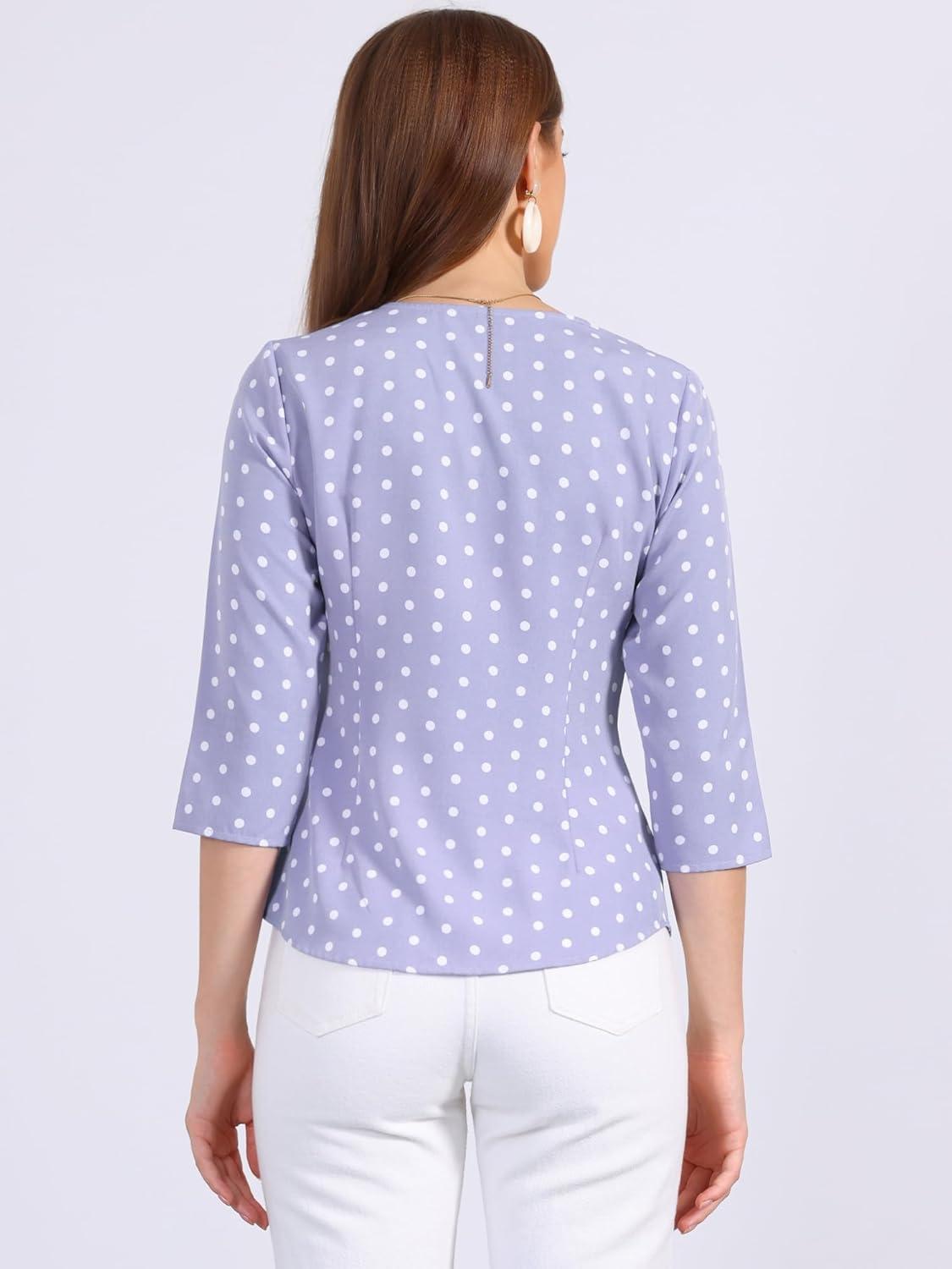 Allegra K Women's Vintage Polka Dots 3/4 Sleeve Button Front V Neck Casual Office Blouse Top(Dusty Purple)