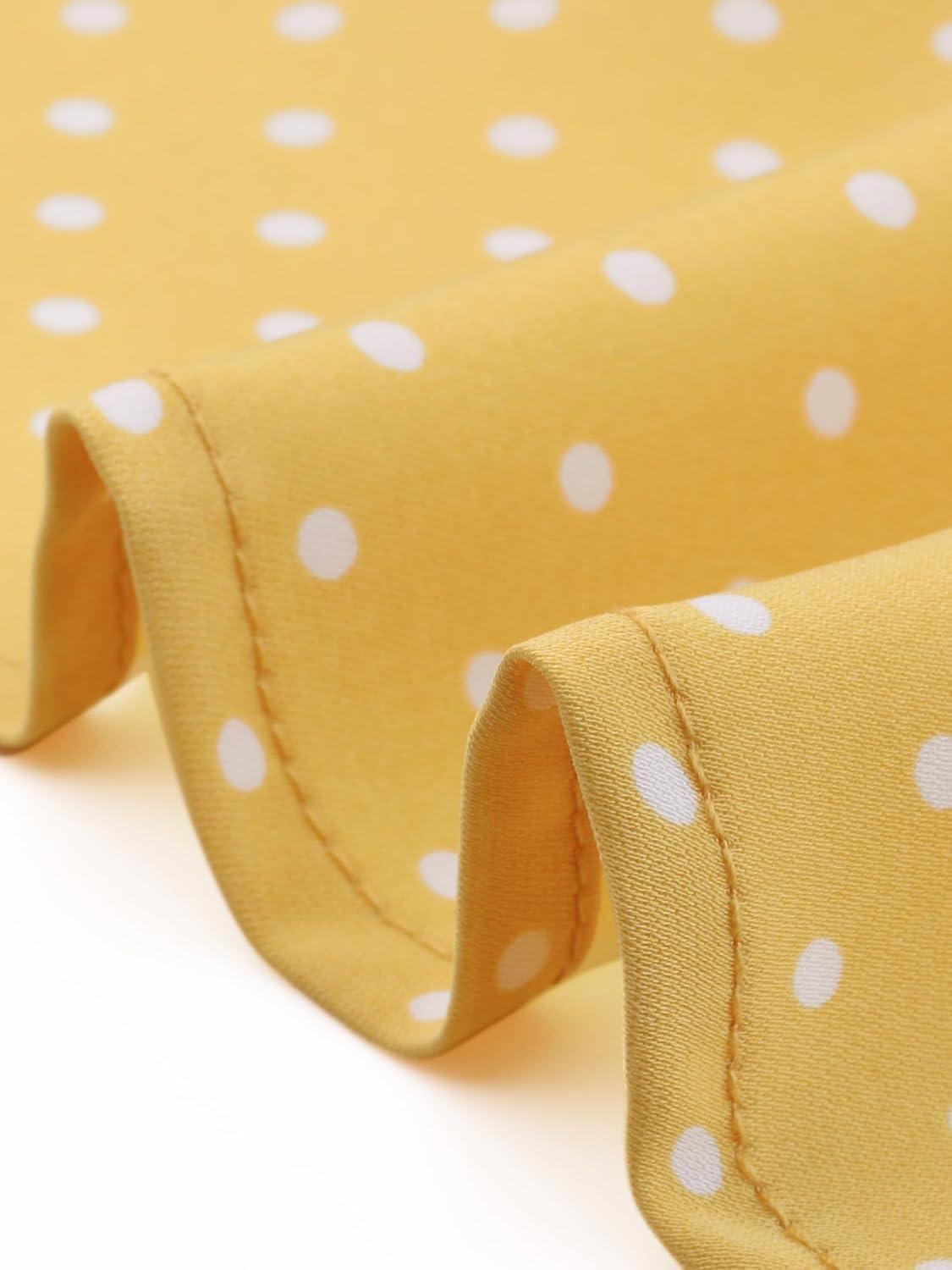 Allegra K Women's Vintage Ruffle Neck Chiffon Printed Top Halloween Long Sleeve Casual Office Blouse(Light Yellow-polka Dots)
