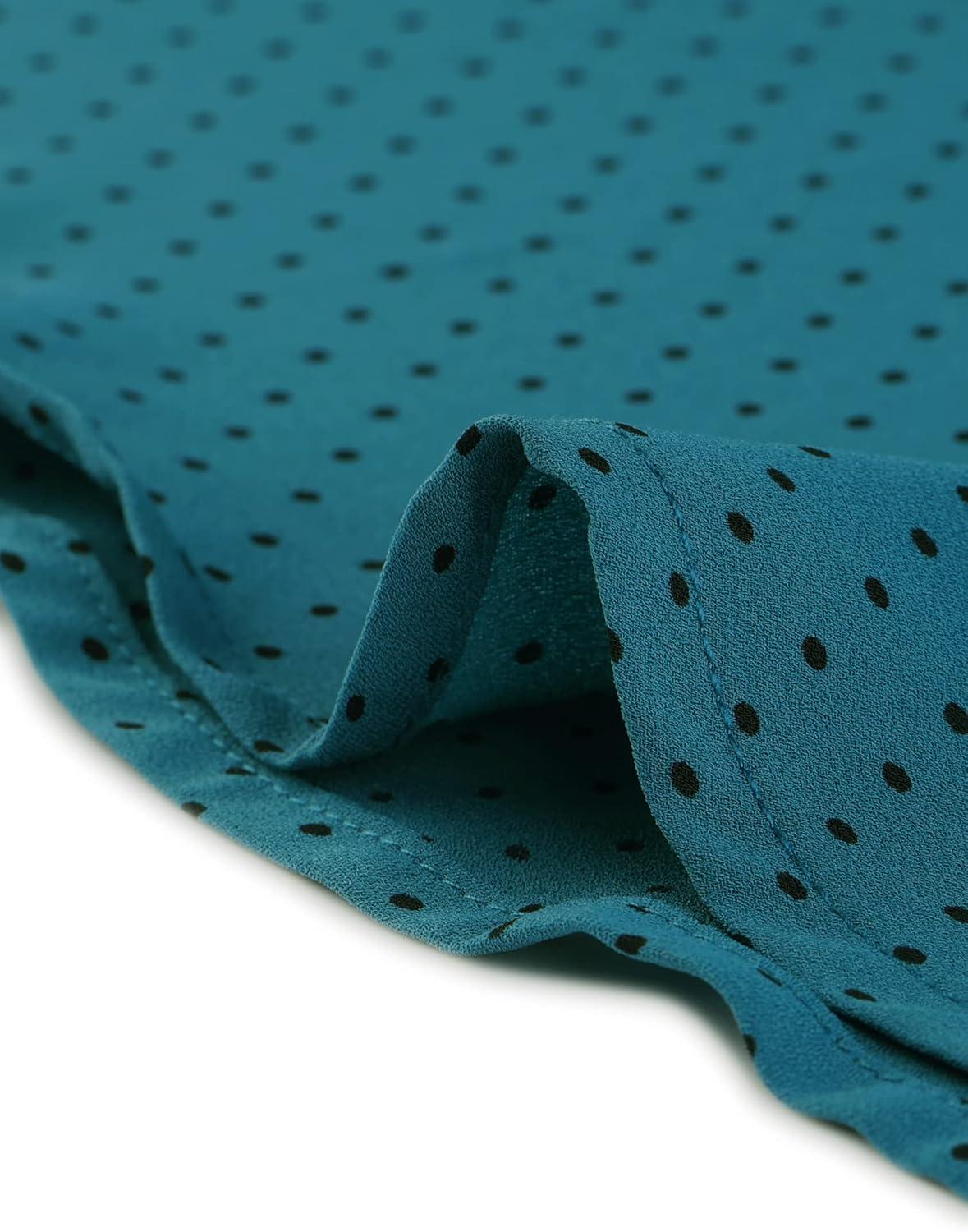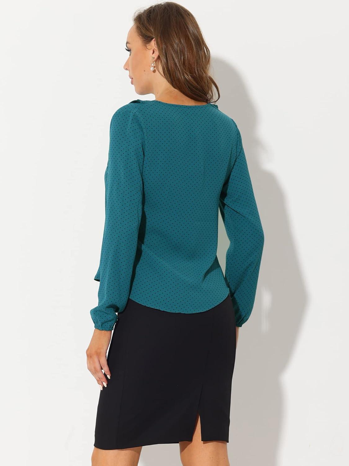 Allegra K Women’s Vintage Ruffle Neck Chiffon Printed Top Halloween Long Sleeve Casual Office Blouse(Peacock Blue-polka Dots)