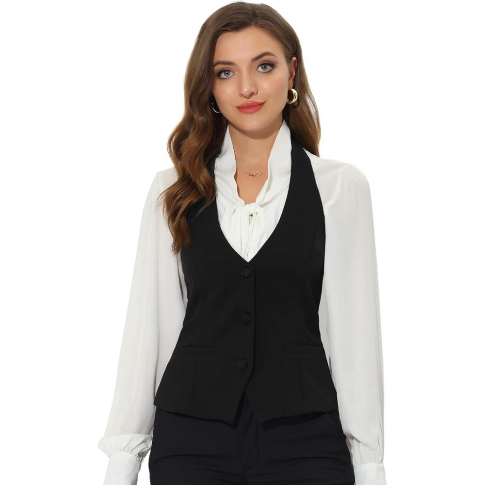 Allegra K Women’s Waistcoat Halter Neck Vintage Sleeveless Button Down Dressy Suit Vest Jacket(Black)