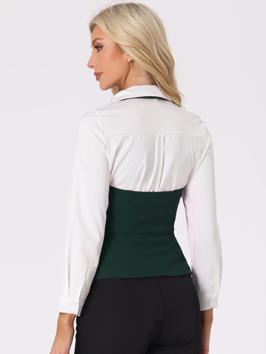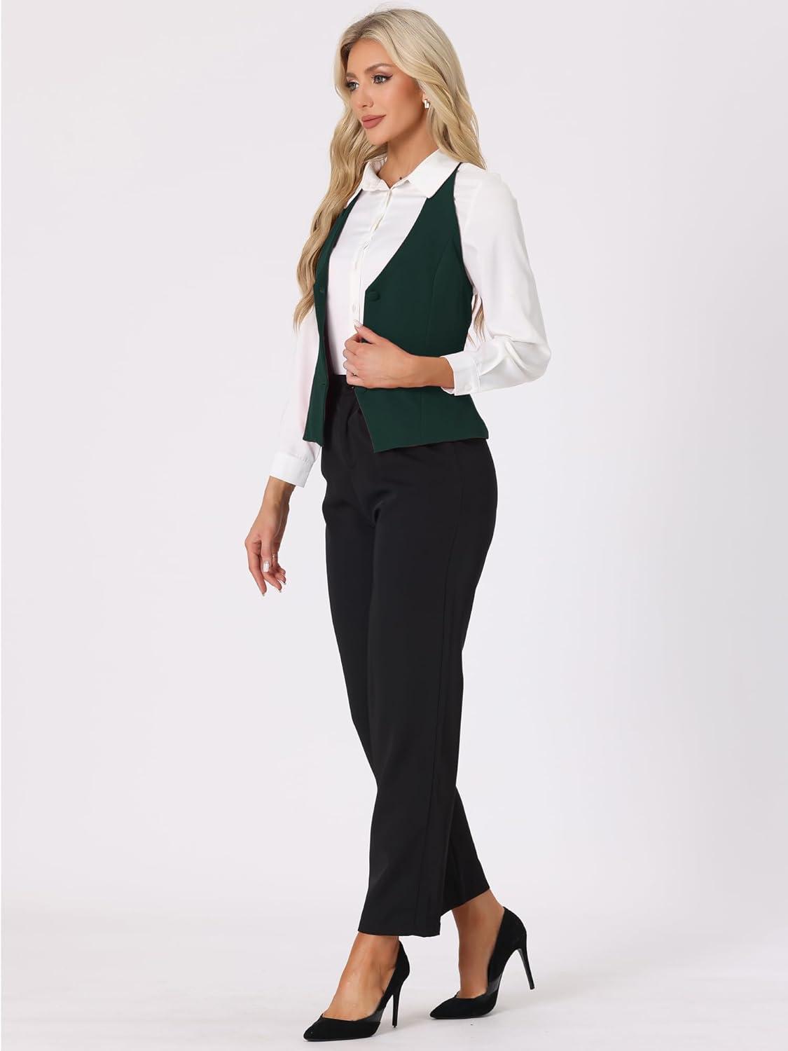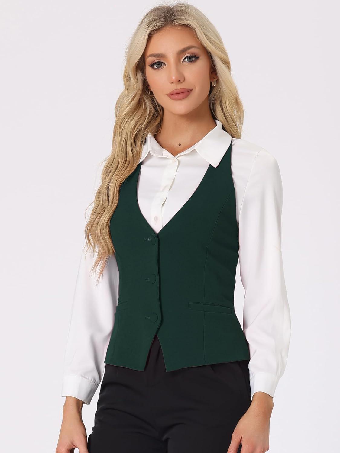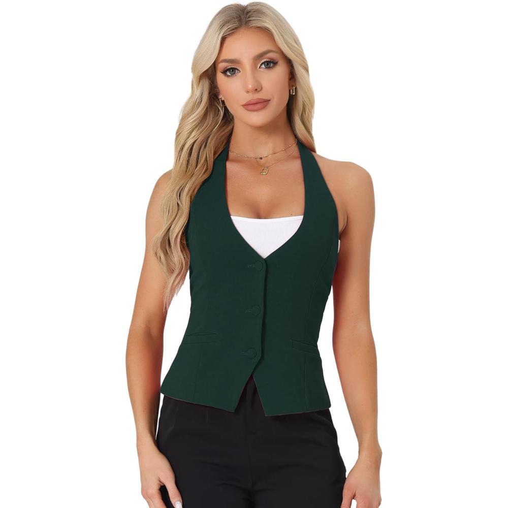 Allegra K Women’s Waistcoat Halter Neck Vintage Sleeveless Button Down Dressy Suit Vest Jacket(Dark Green)