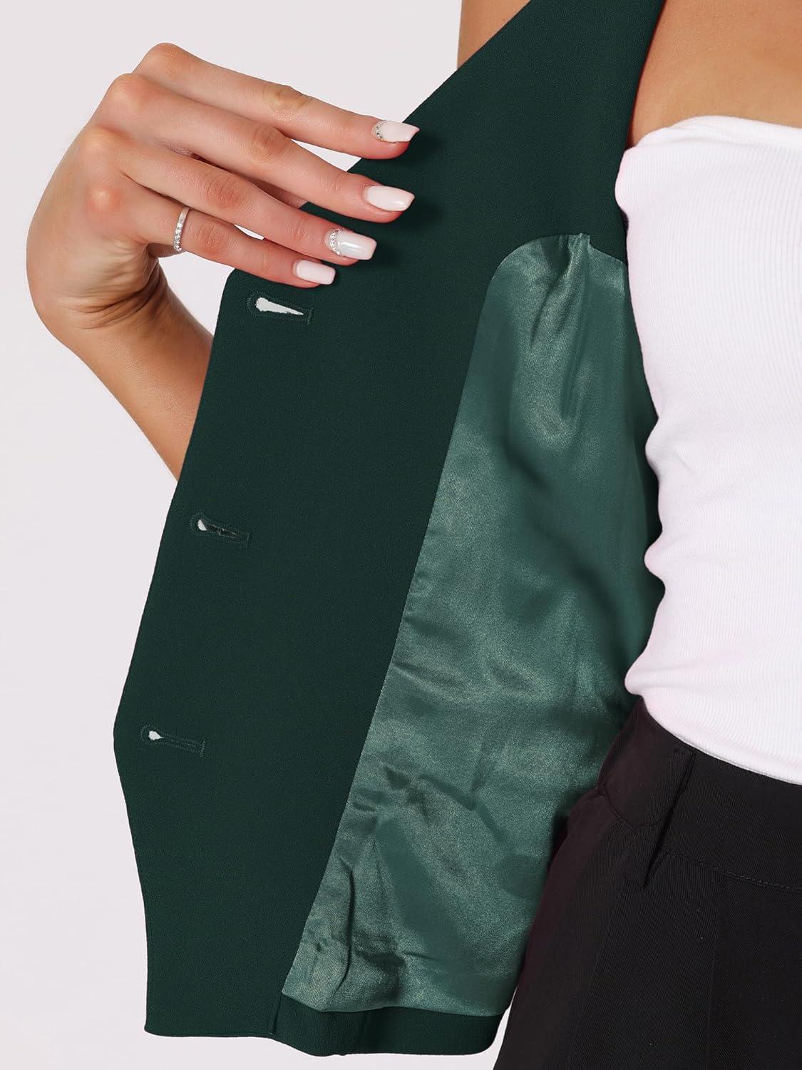 Allegra K Women's Waistcoat Halter Neck Vintage Sleeveless Button Down Dressy Suit Vest Jacket(Dark Green)