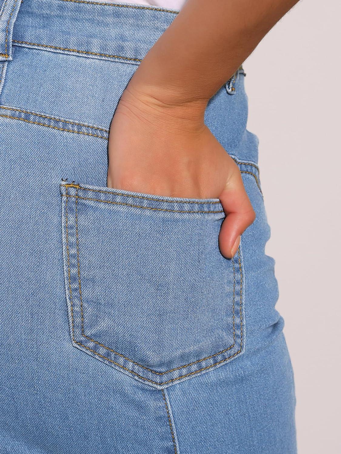 Allegra K Women’s Washed Fishtail Denim Skirt High Waist Raw Hem Fashion Casual Midi Jean Skirts with Pockets(Light Blue)