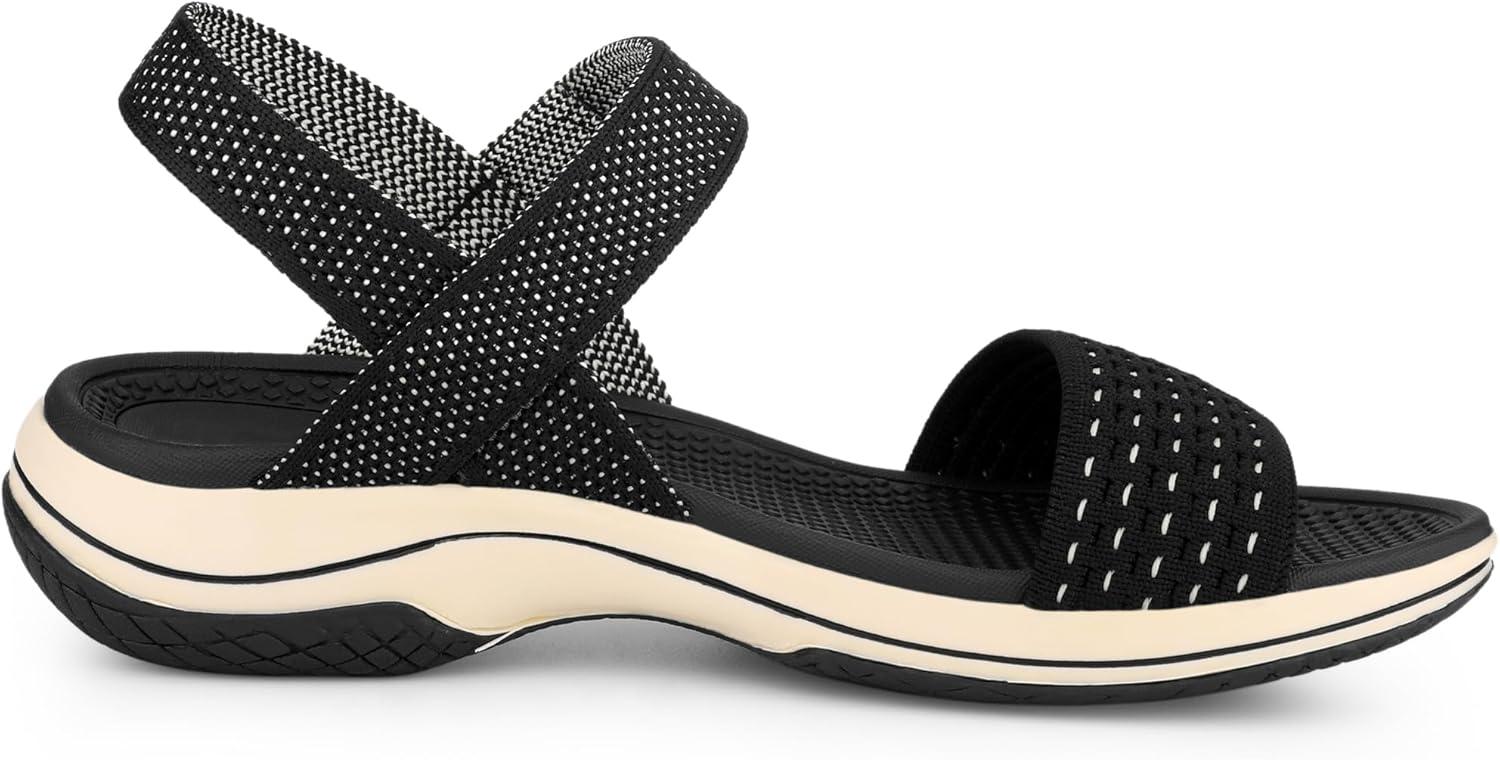 Allegra K Women's Wedge Low Heel Hook and Loop Platform Shoes Sandals(Black)