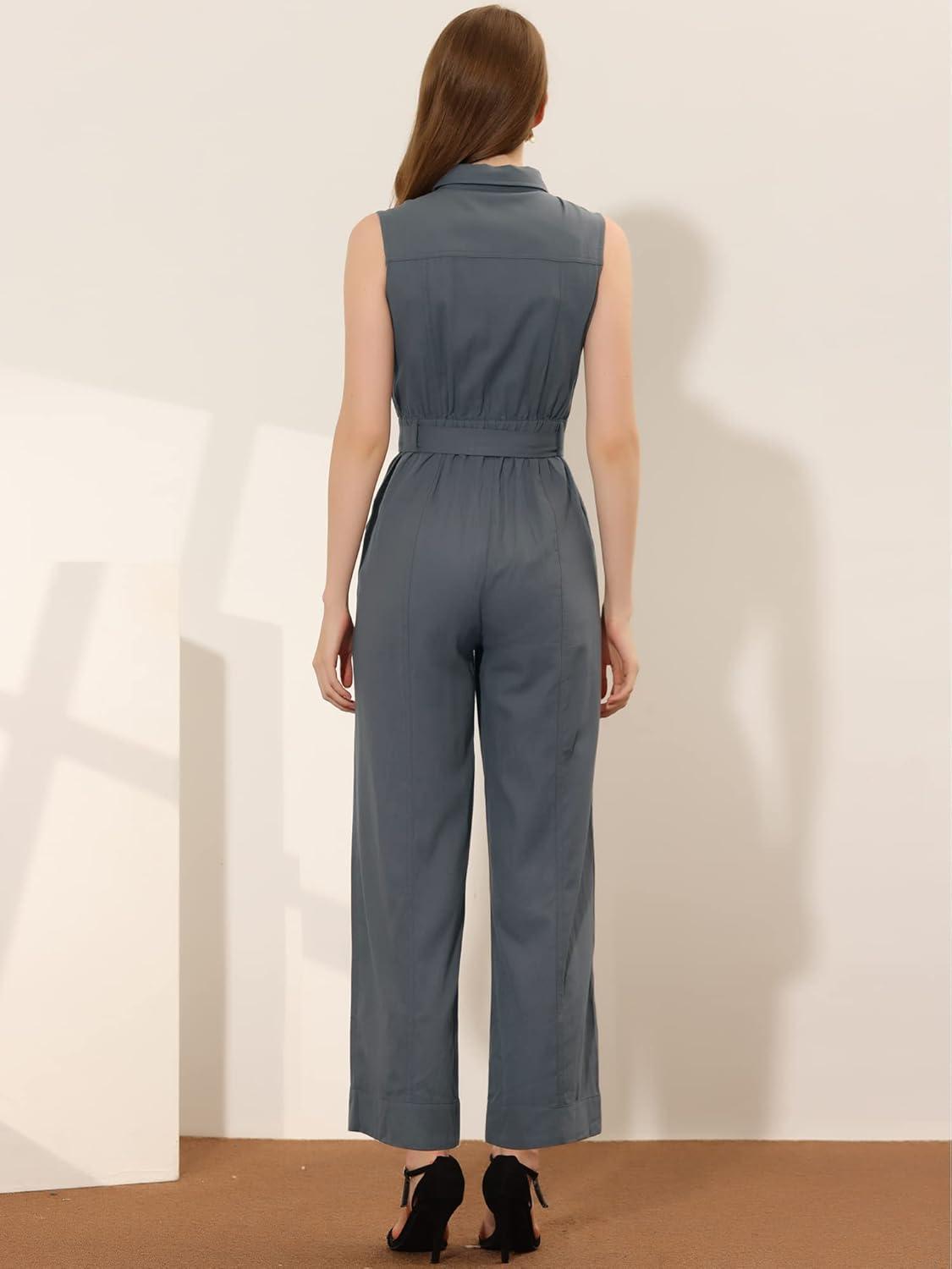 Allegra K Women's Wide Leg Jumpsuit 2026 Sleeveless Collared Tie Waist Coverall Button Down Cargo Jumpsuits(Grey)