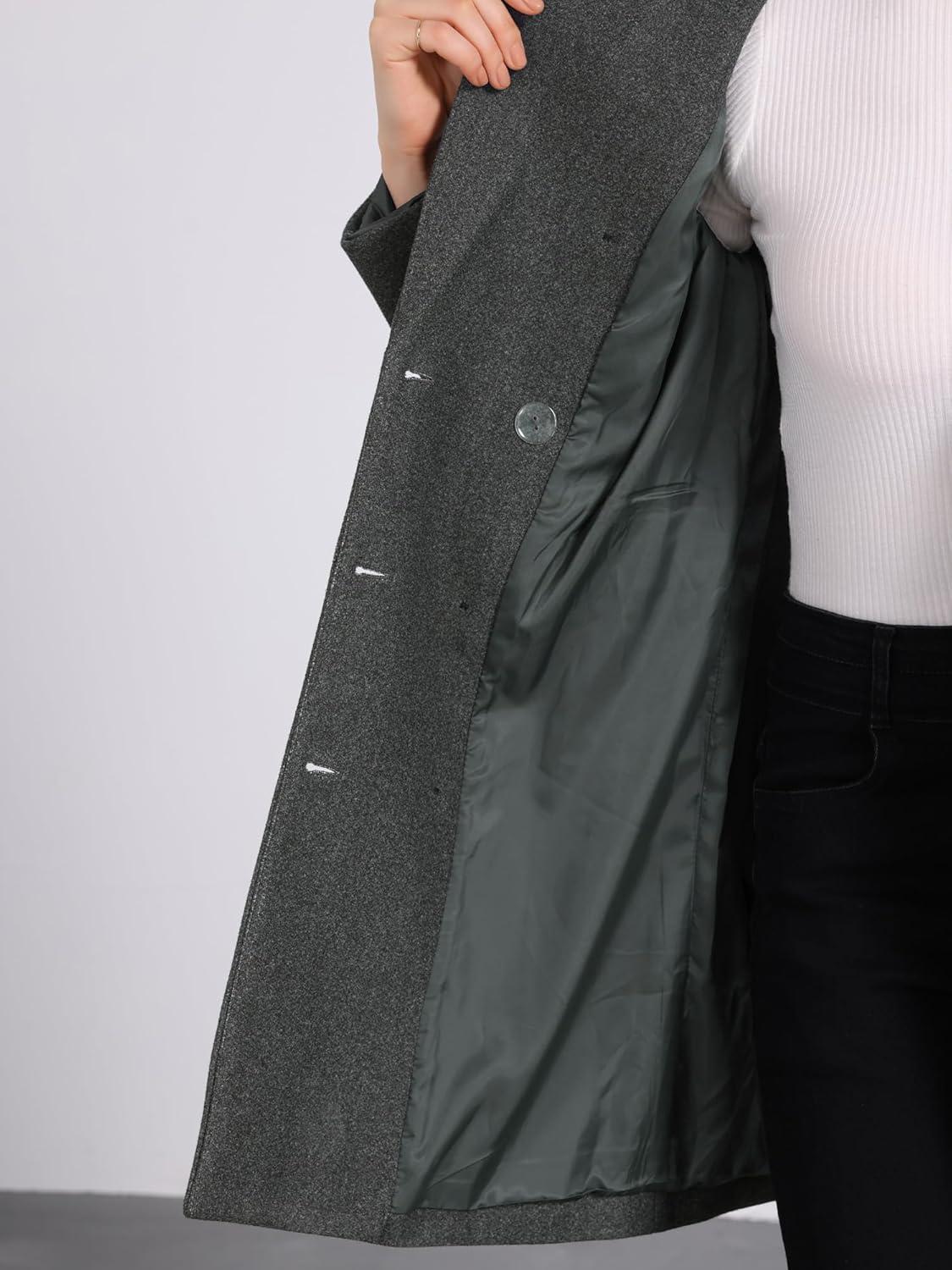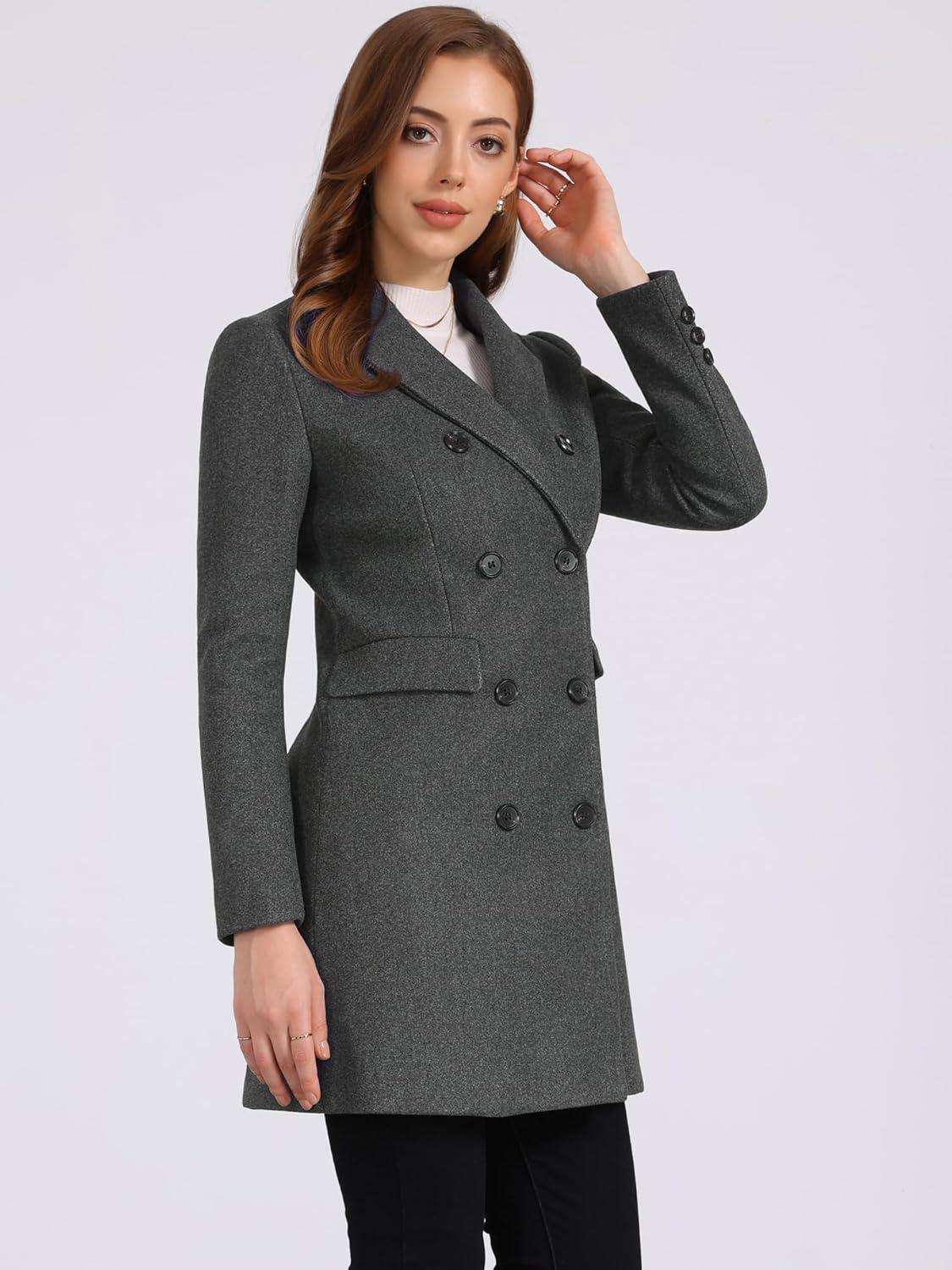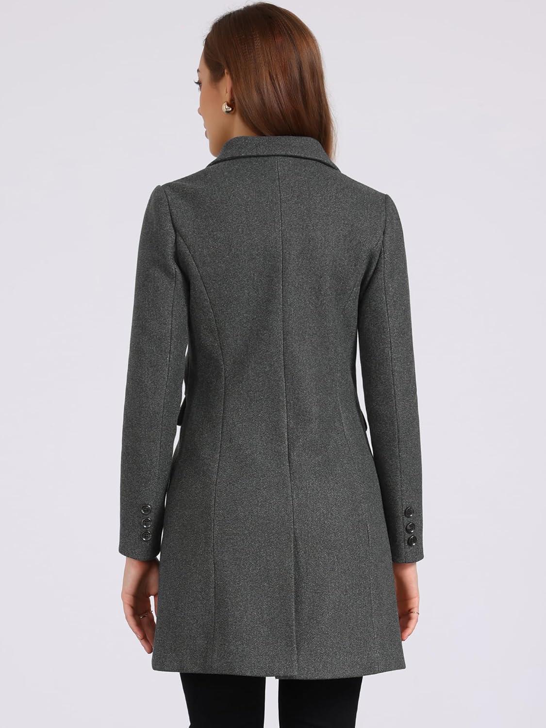 Allegra K Women's Winter Coat Elegant Notched Lapel Double Breasted Trench Coat(Dark Grey)