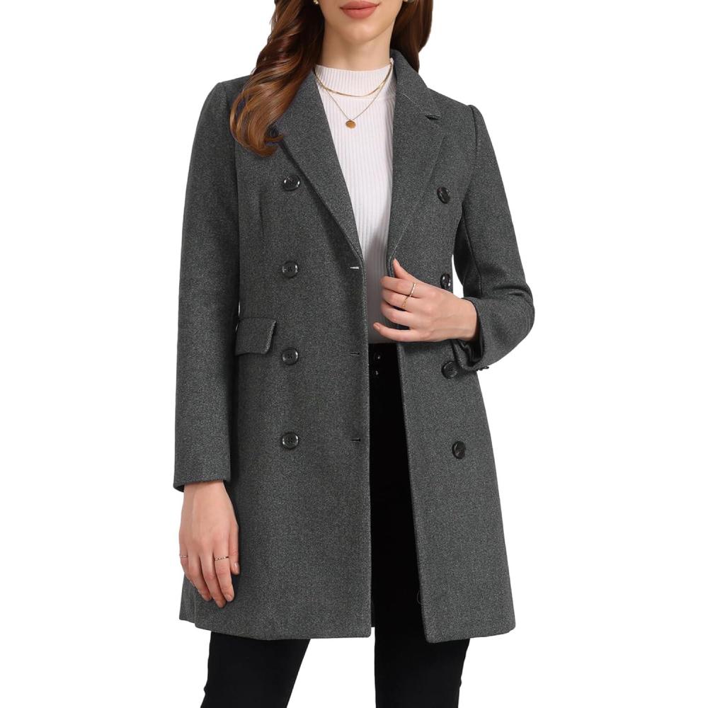 Allegra K Women’s Winter Coat Elegant Notched Lapel Double Breasted Trench Coat(Dark Grey)
