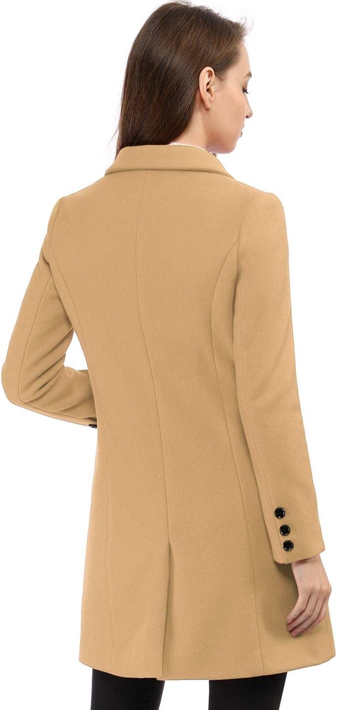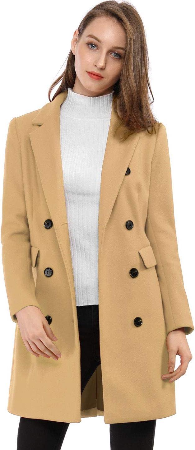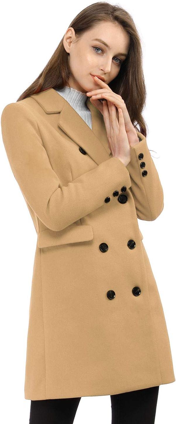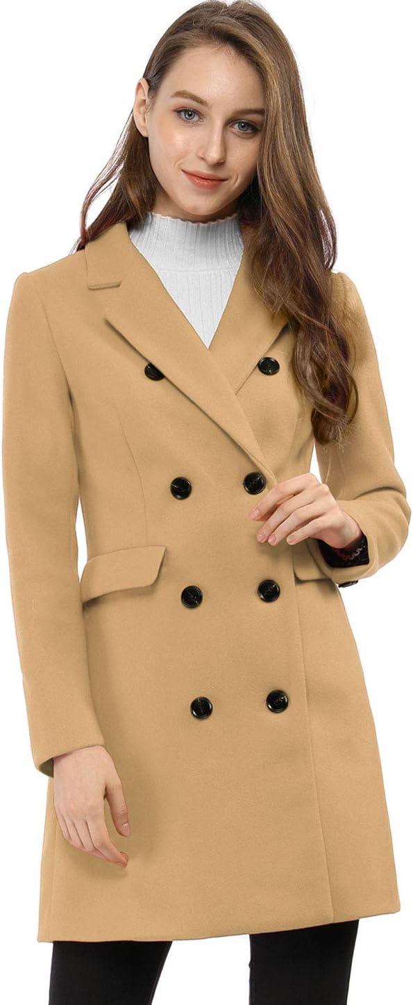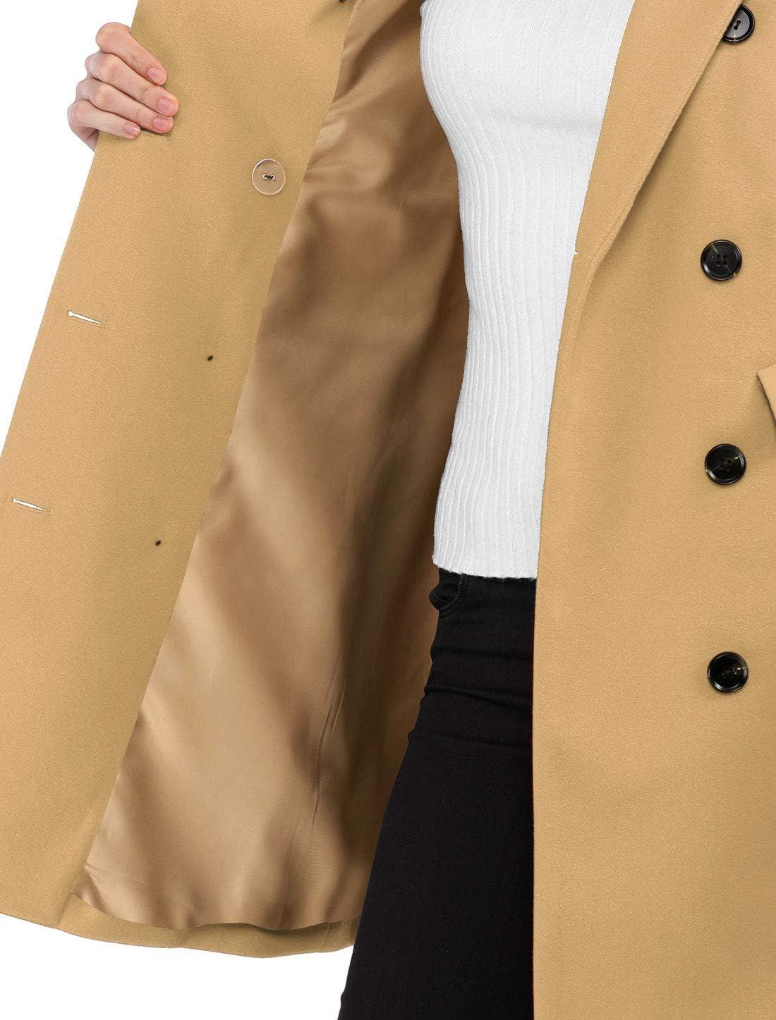 Allegra K Women's Winter Coat Elegant Notched Lapel Double Breasted Trench Coat(Khaki)