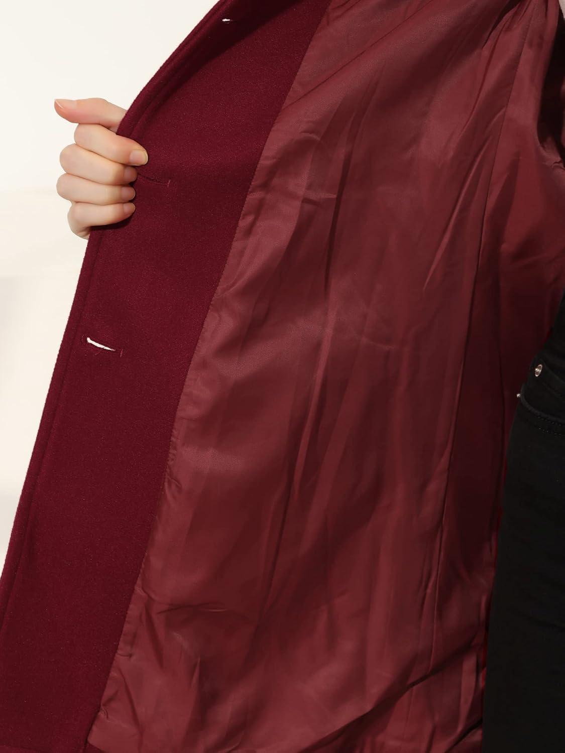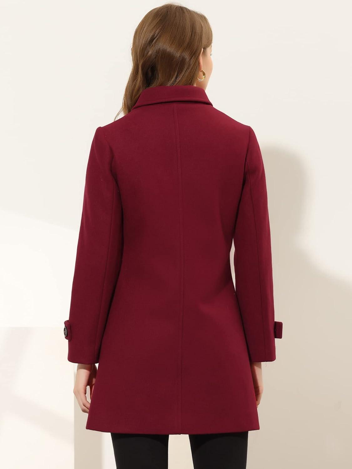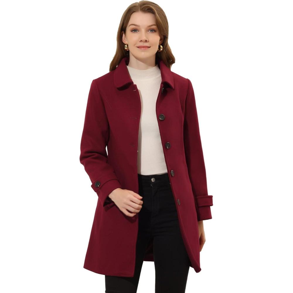 Allegra K Women’s Winter Outerwear Overcoat Peter Pan Collar Mid-thigh A-line Single Breasted Pea Coat(Burgundy)