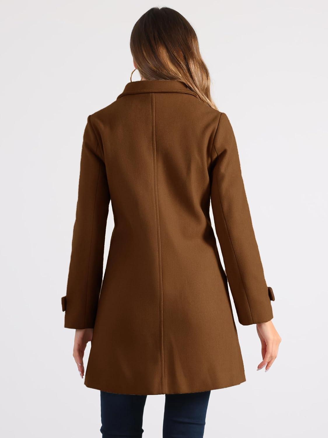 Allegra K Women's Winter Outerwear Overcoat Peter Pan Collar Mid-thigh A-line Single Breasted Pea Coat(Dark Brown)