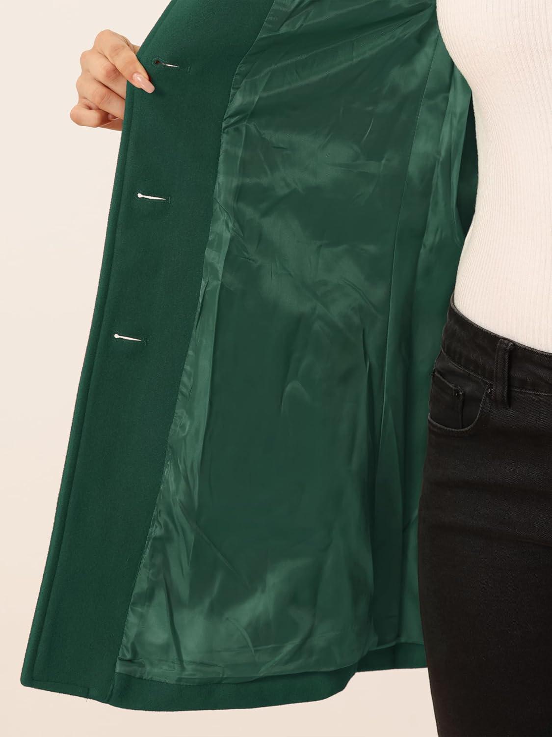 Allegra K Women's Winter Outerwear Overcoat Peter Pan Collar Mid-thigh A-line Single Breasted Pea Coat(Dark Green)