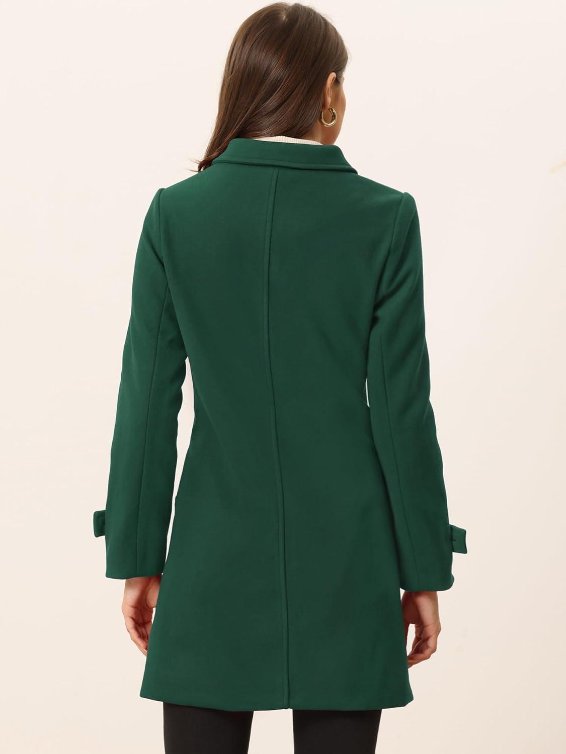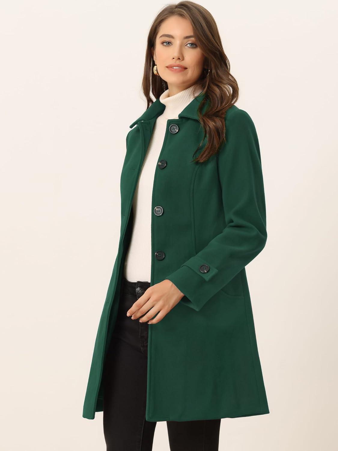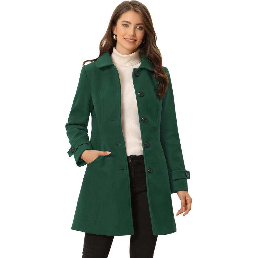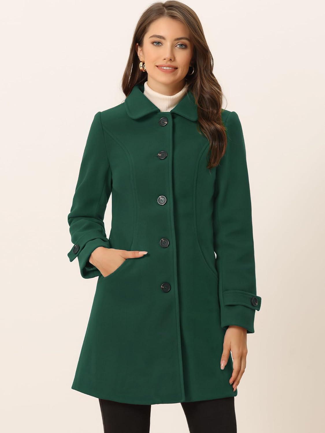 Allegra K Women’s Winter Outerwear Overcoat Peter Pan Collar Mid-thigh A-line Single Breasted Pea Coat(Dark Green)