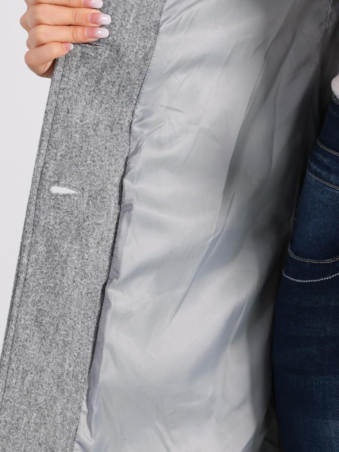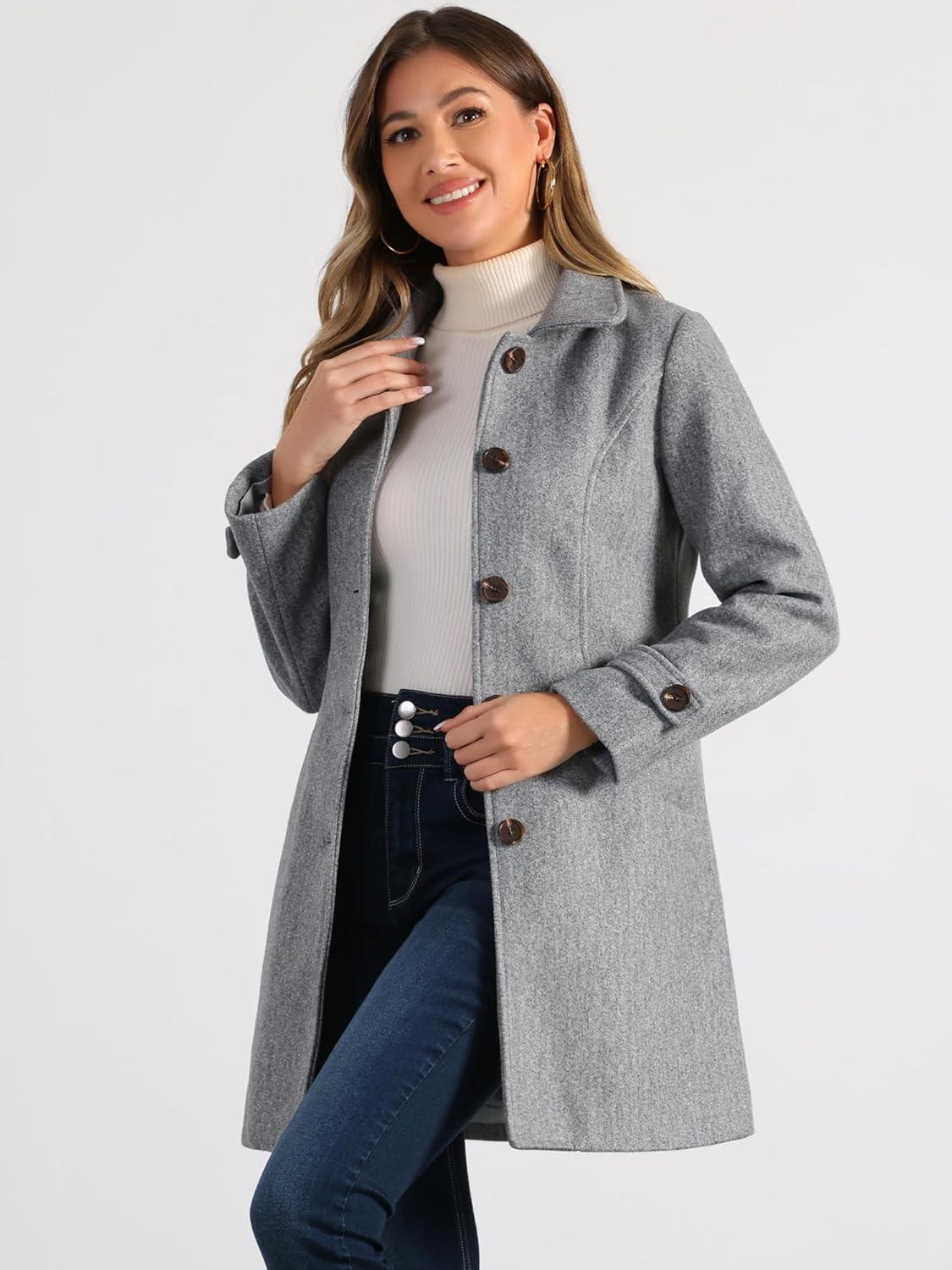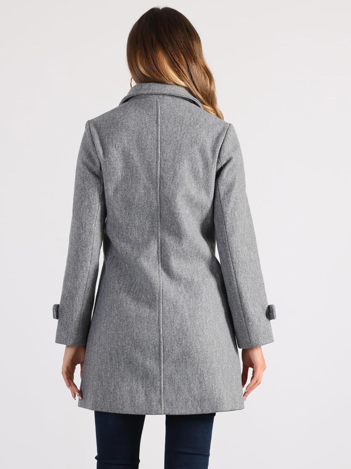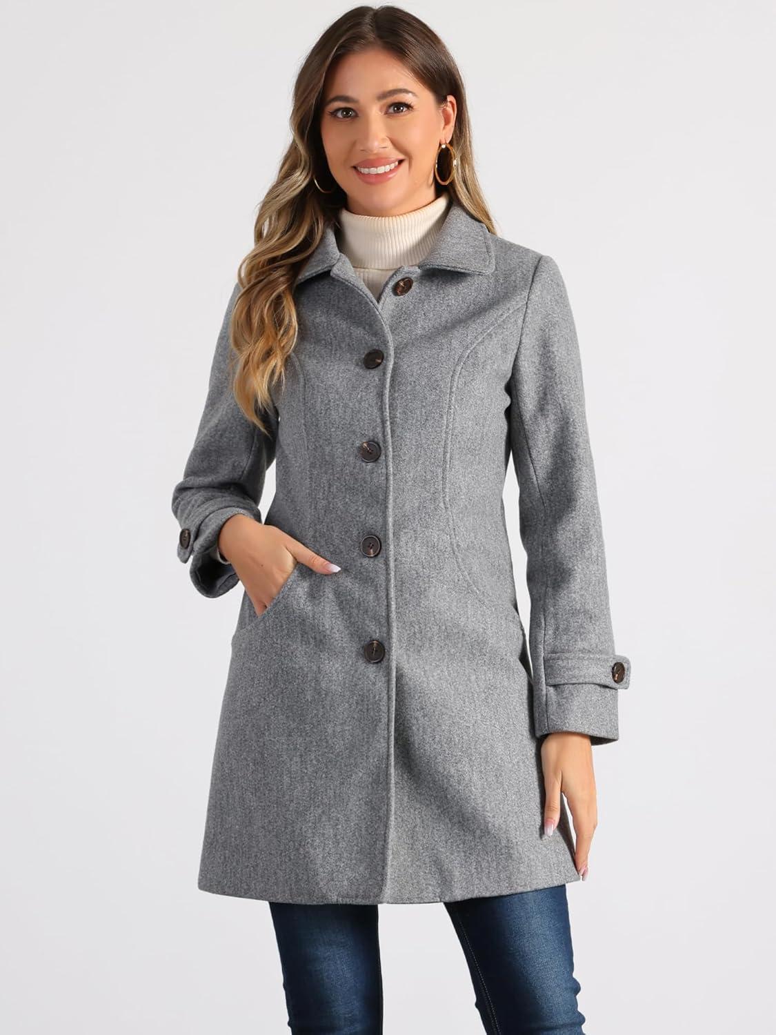 Allegra K Women’s Winter Outerwear Overcoat Peter Pan Collar Mid-thigh A-line Single Breasted Pea Coat(Gray)