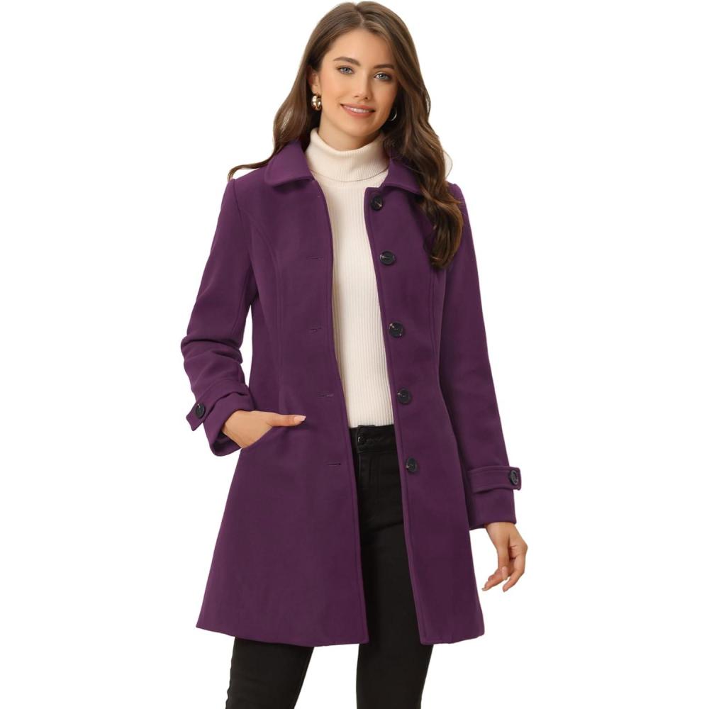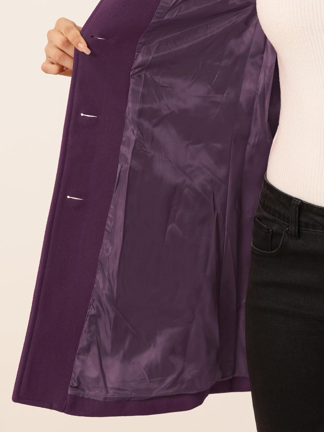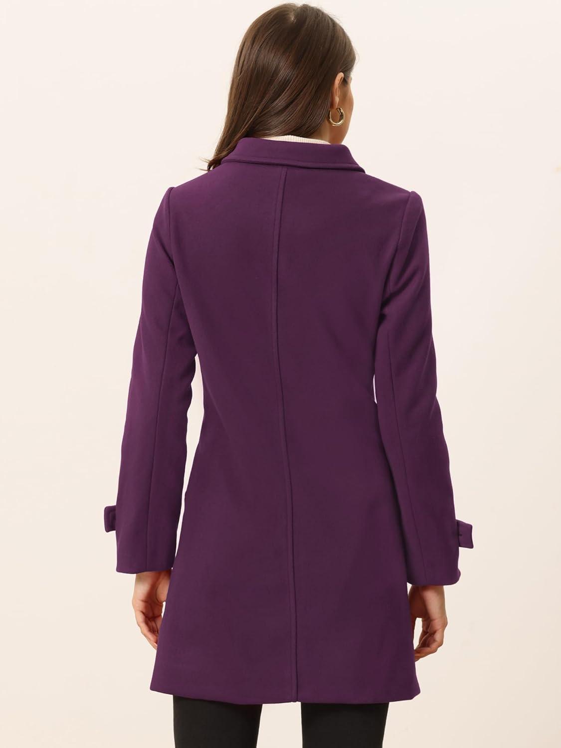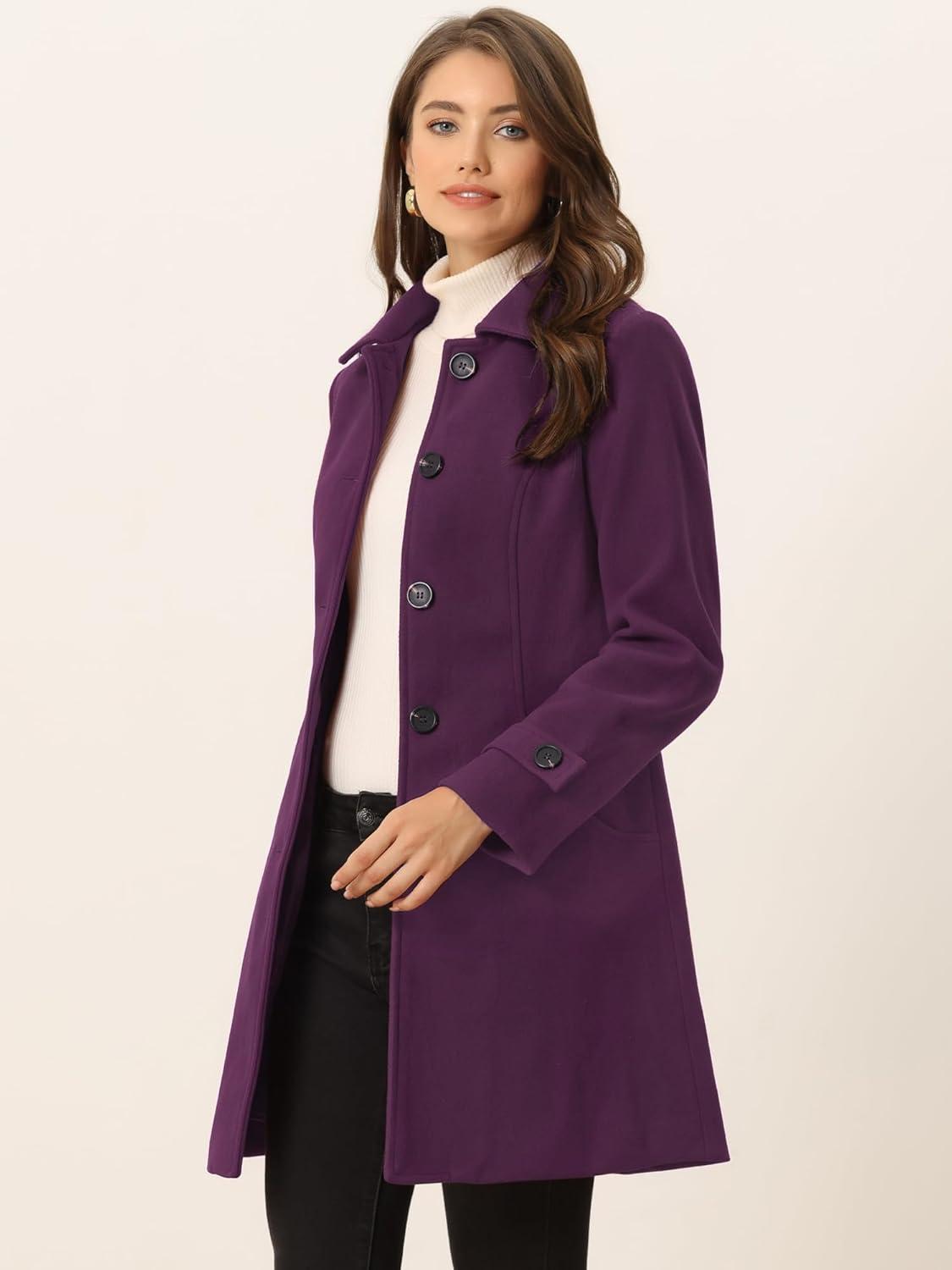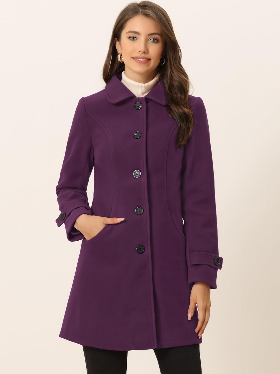 Allegra K Women’s Winter Outerwear Overcoat Peter Pan Collar Mid-thigh A-line Single Breasted Pea Coat(Purple)
