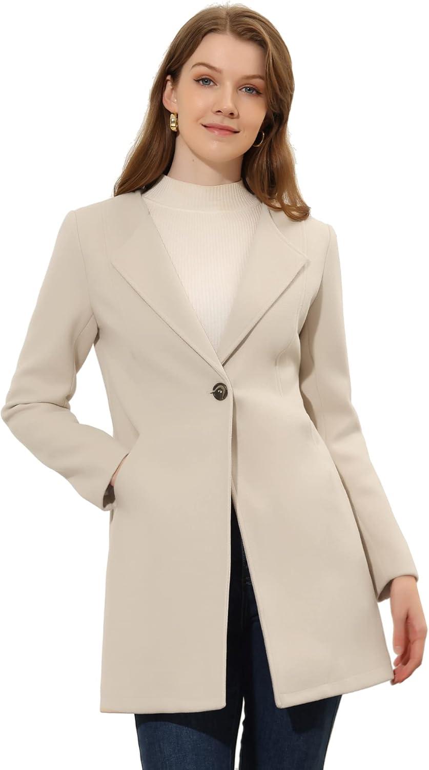 Allegra K Women's Winter Overcoat Lapel Collar Single Breasted Outerwear Long Pea Coat(Beige White)