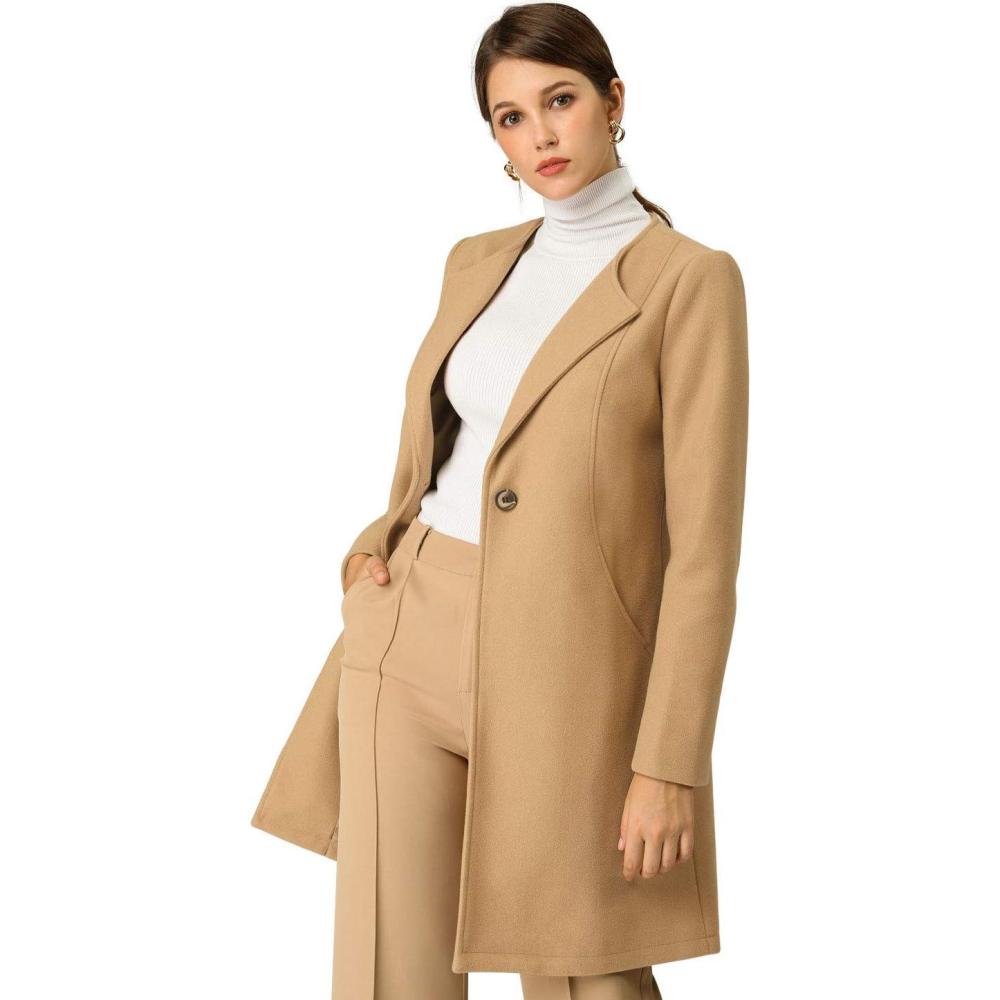 Allegra K Women’s Winter Overcoat Lapel Collar Single Breasted Outerwear Long Pea Coat(Khaki)