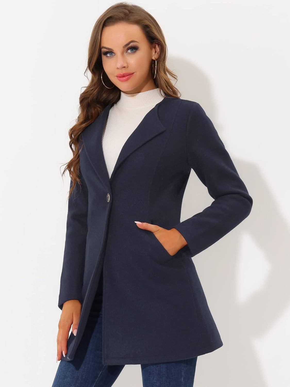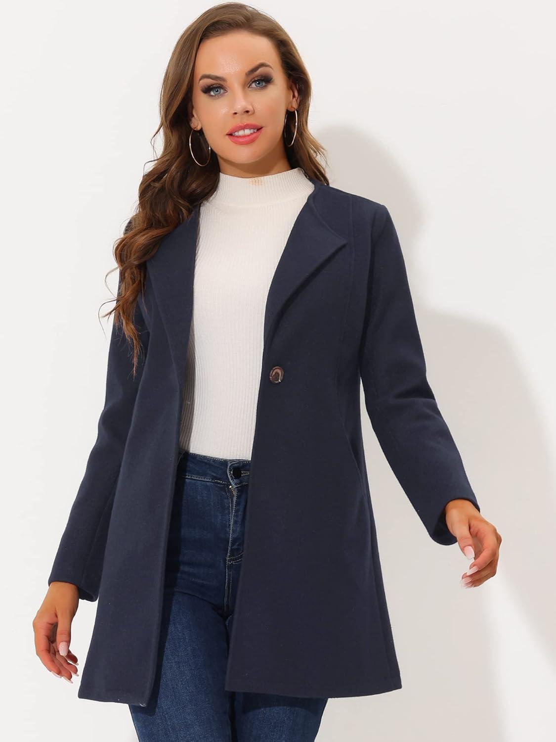 Allegra K Women's Winter Overcoat Lapel Collar Single Breasted Outerwear Long Pea Coat(Navy Blue)