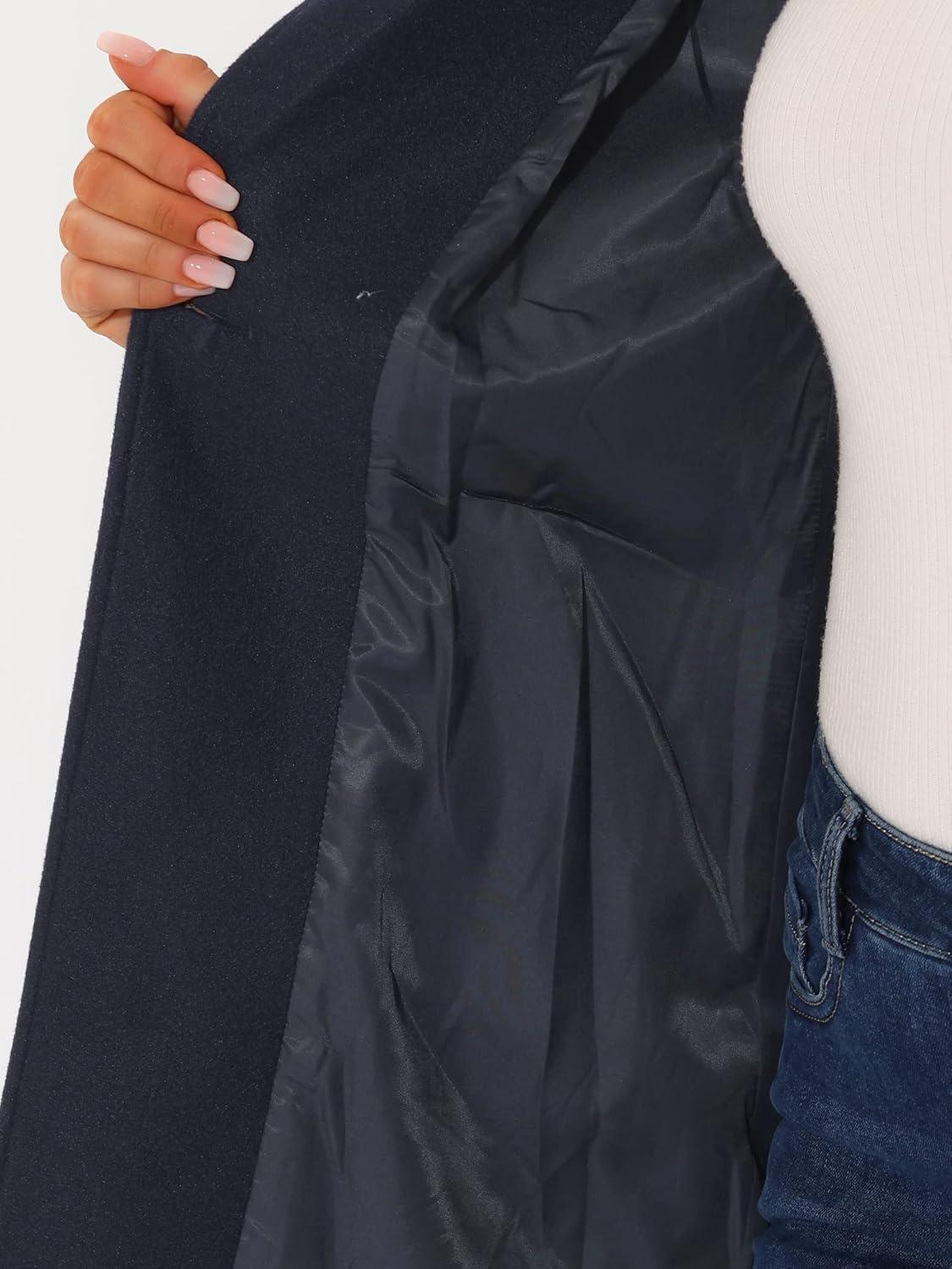 Allegra K Women’s Winter Overcoat Lapel Collar Single Breasted Outerwear Long Pea Coat(Navy Blue)