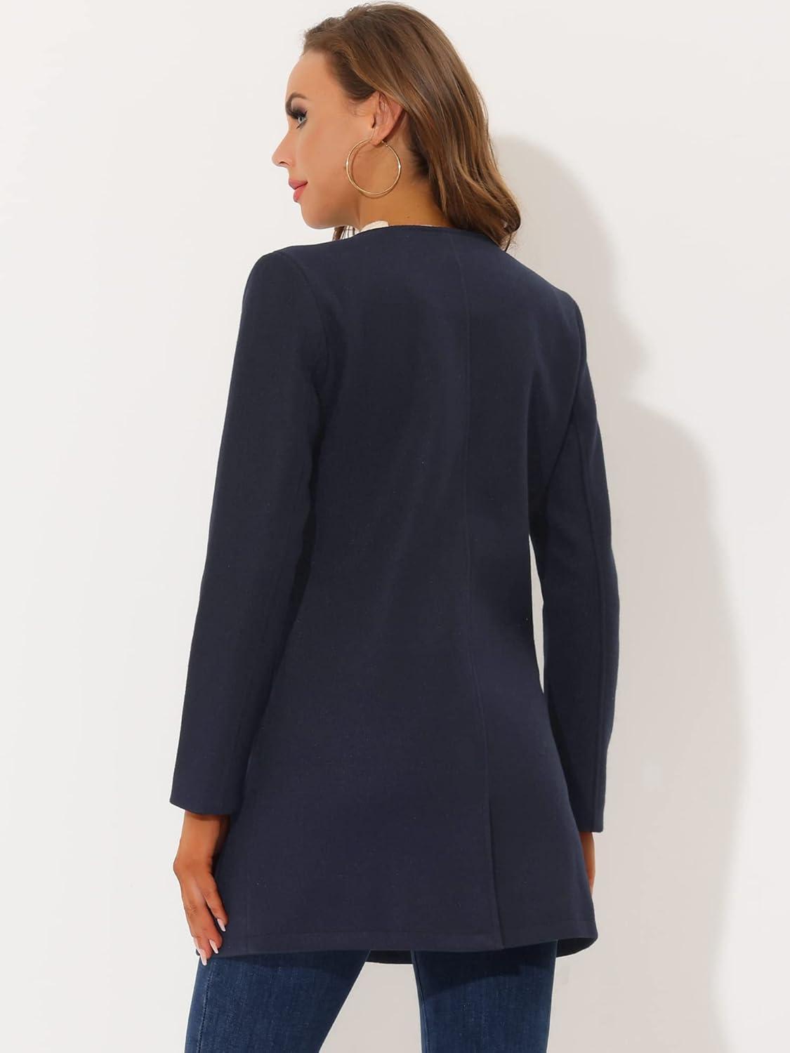 imageAllegra K Womens Winter Overcoat Lapel Collar Single Breasted Outerwear Long Pea CoatNavy Blue