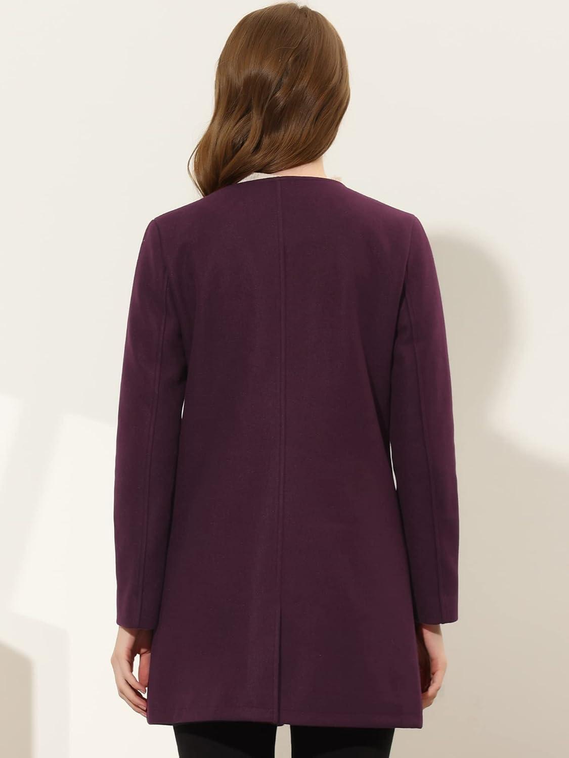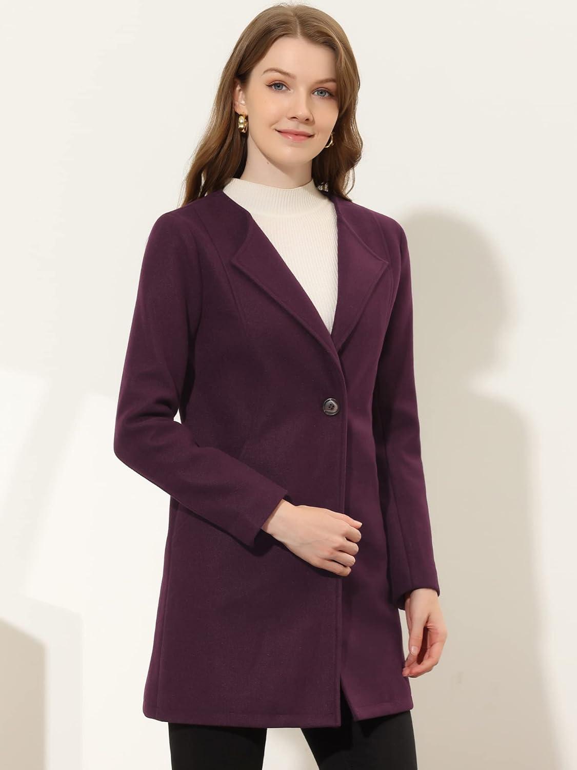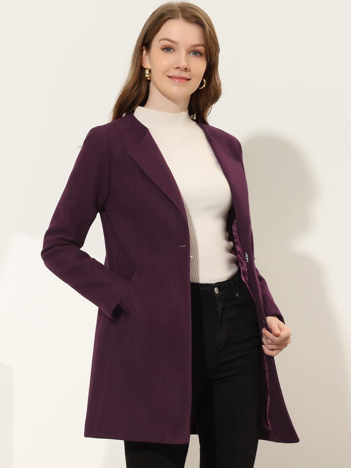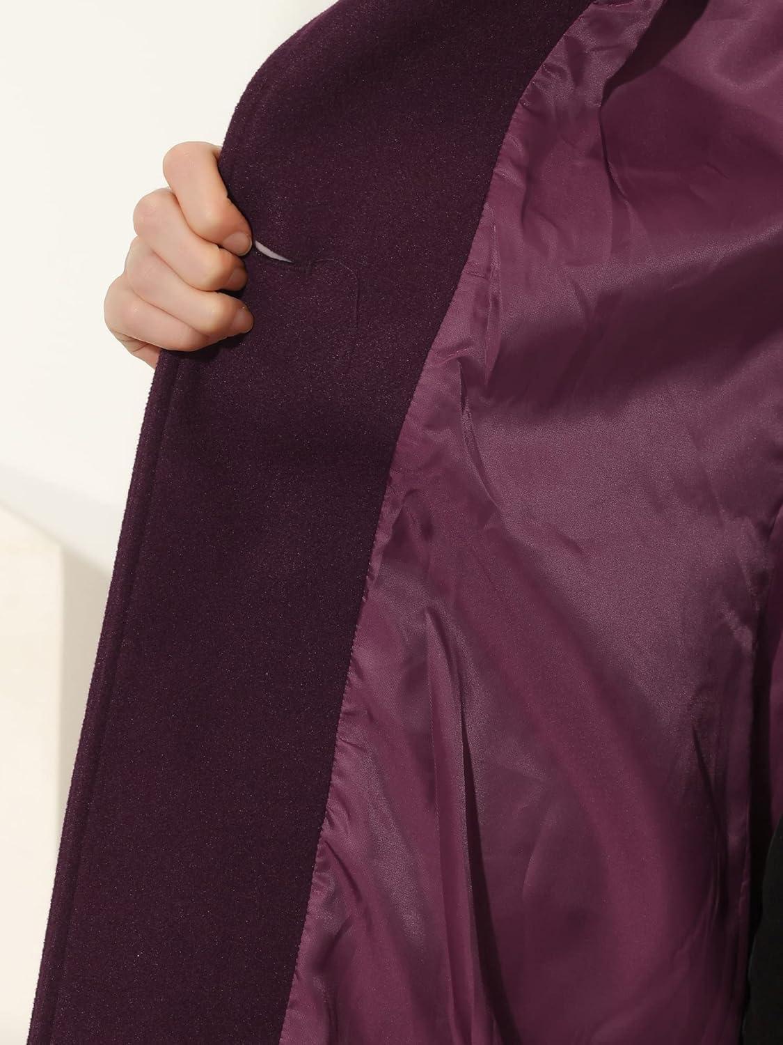 Allegra K Women’s Winter Overcoat Lapel Collar Single Breasted Outerwear Long Pea Coat(Purplish Red)