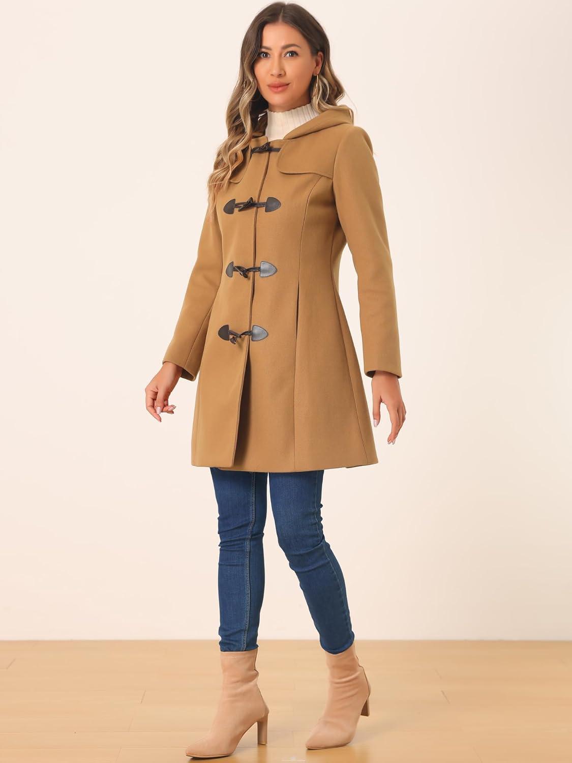 Allegra K Women’s Winter Overcoat Mid-thigh Hooded Toggle Duffle Long Coat(Camel)