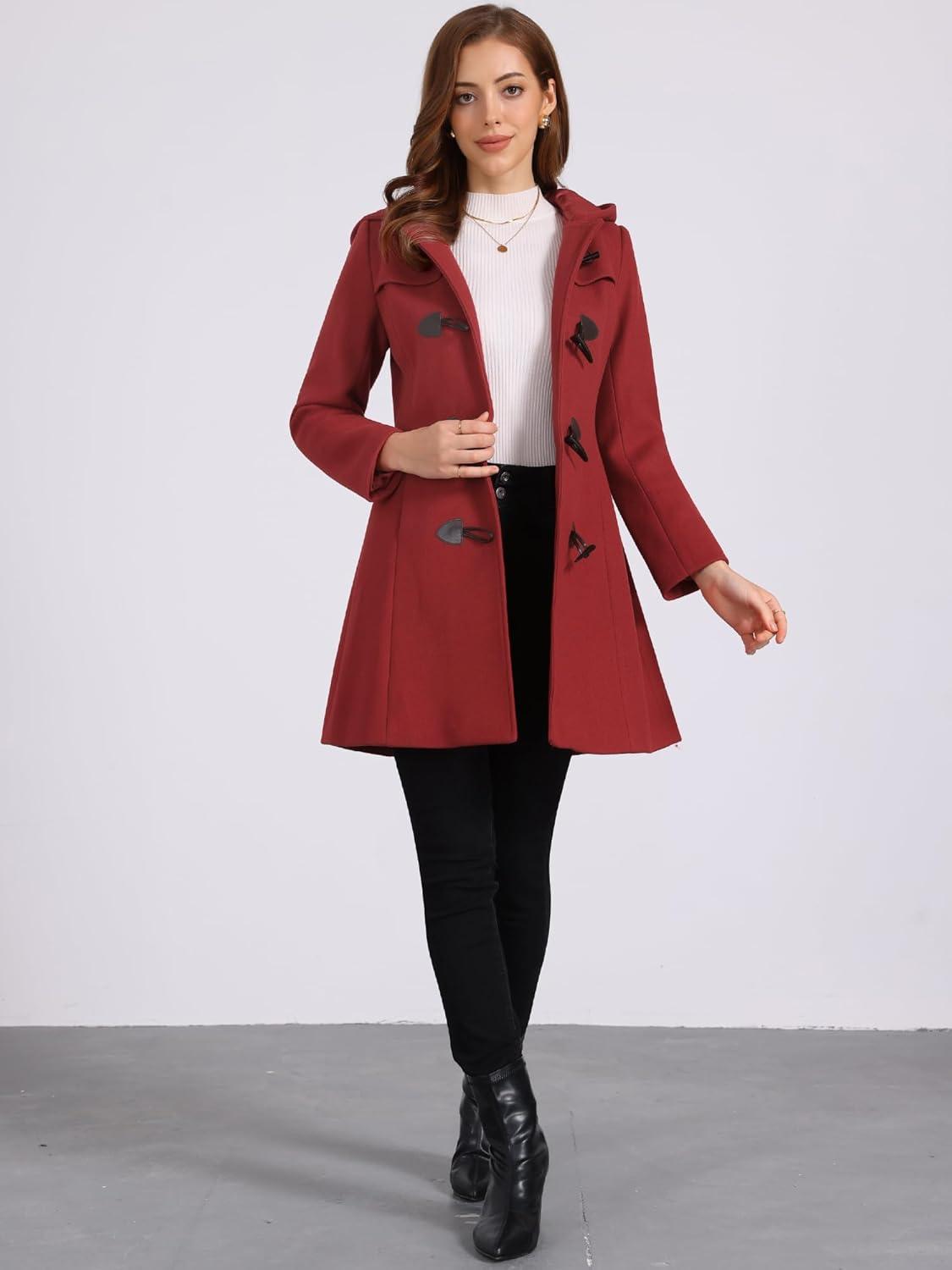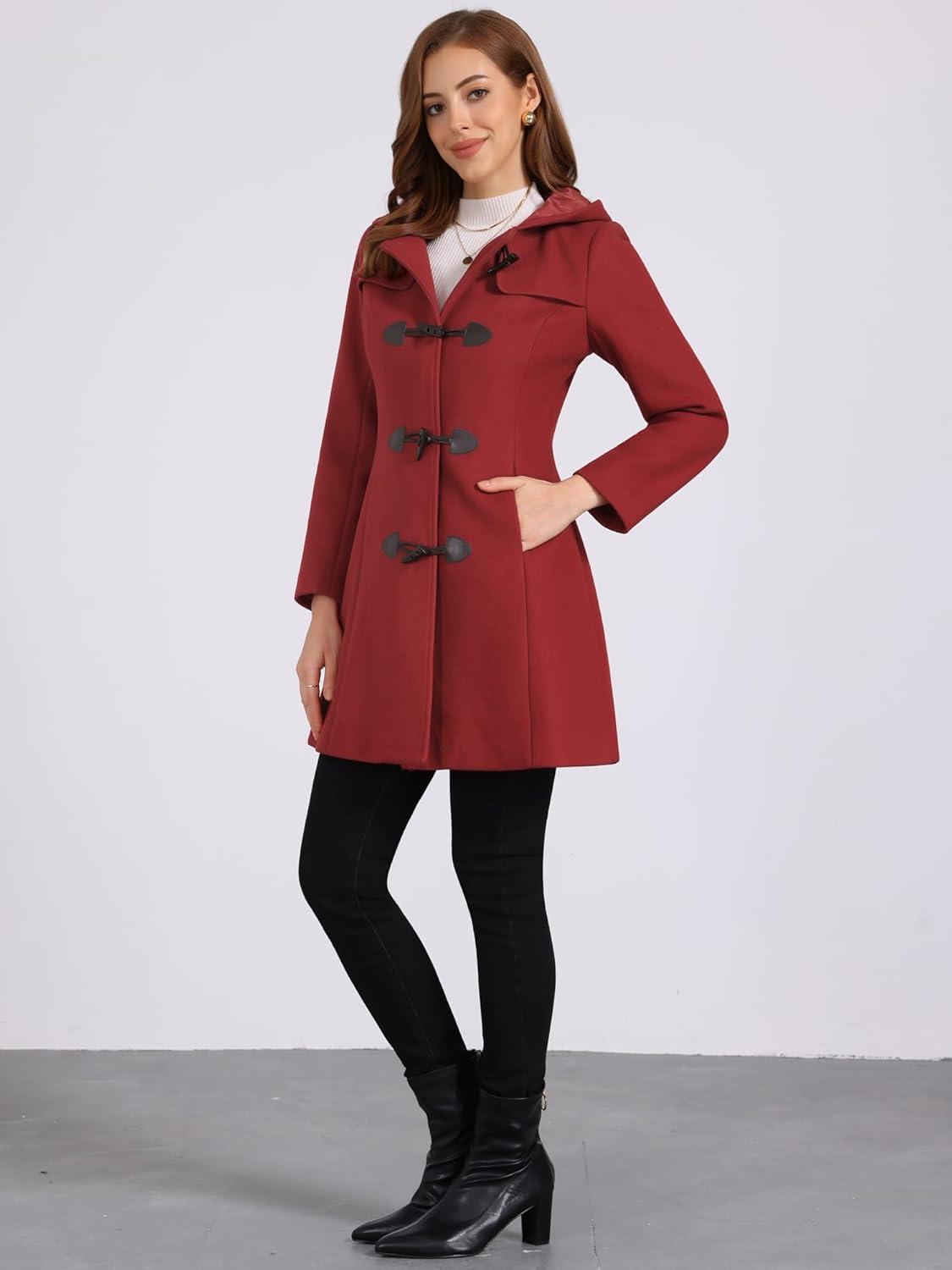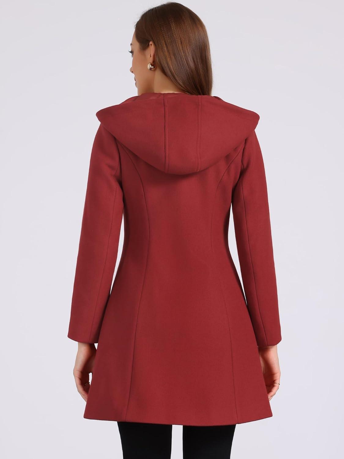 Allegra K Women's Winter Overcoat Mid-thigh Hooded Toggle Duffle Long Coat(Dark Red)