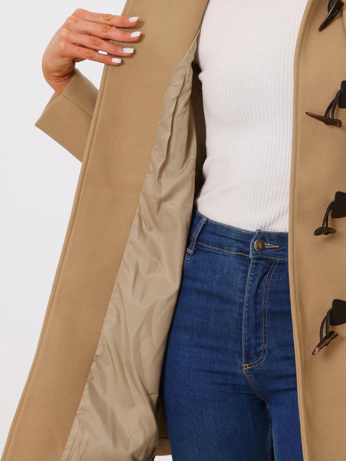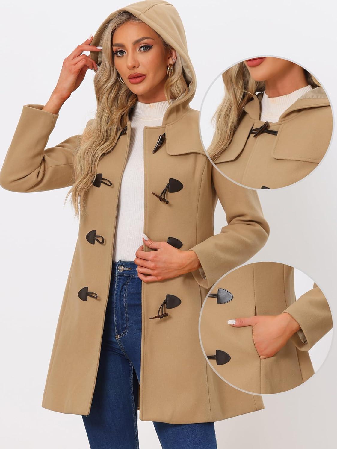 Allegra K Women’s Winter Overcoat Mid-thigh Hooded Toggle Duffle Long Coat(Khaki)