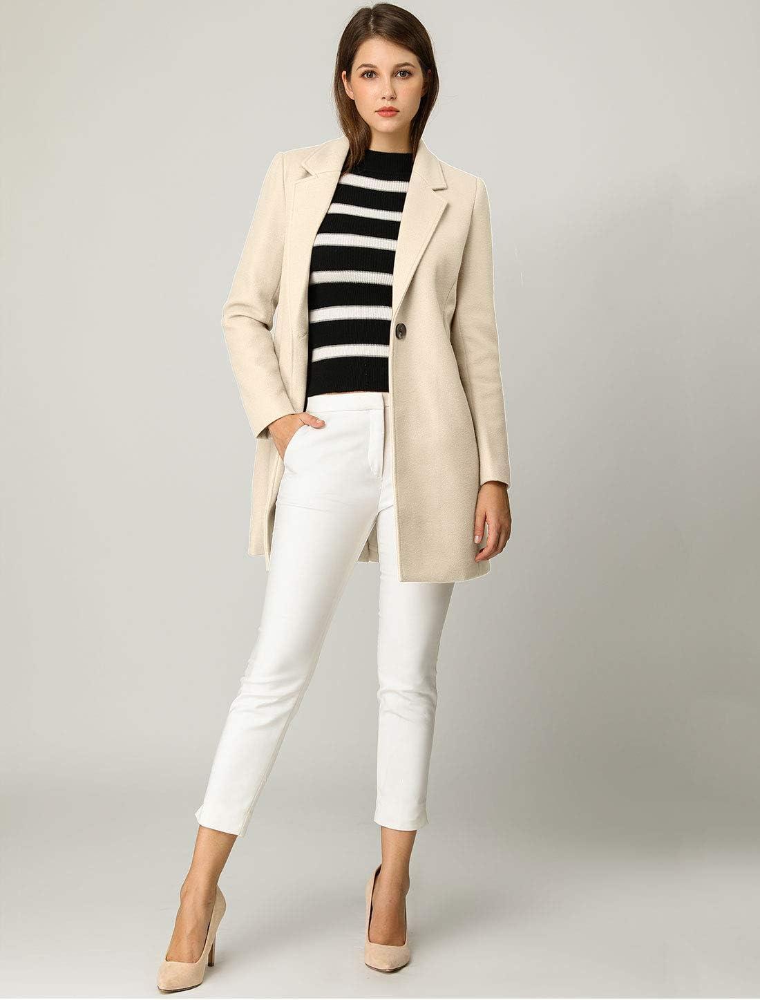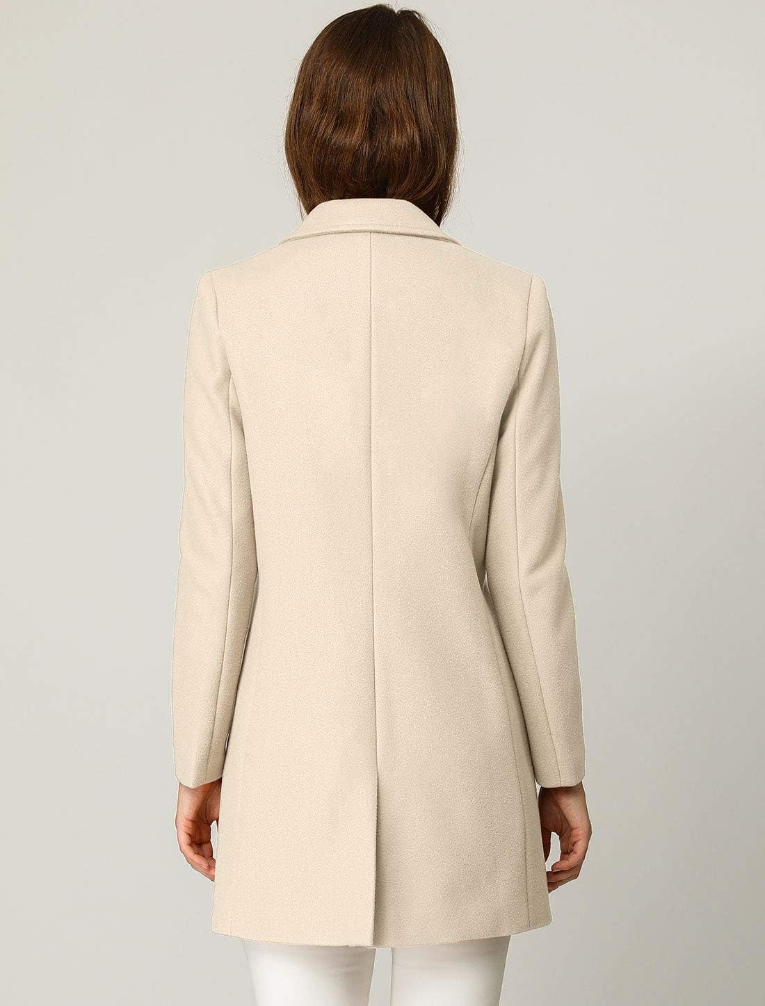 Allegra K Women’s Winter Overcoat Notched Lapel One Buttoned Mid-Length Long Coat(Beige)
