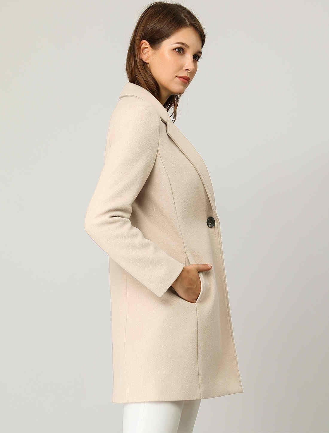 imageAllegra K Womens Winter Overcoat Notched Lapel One Buttoned MidLength Long CoatBeige