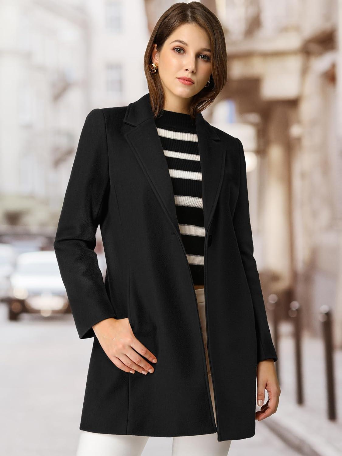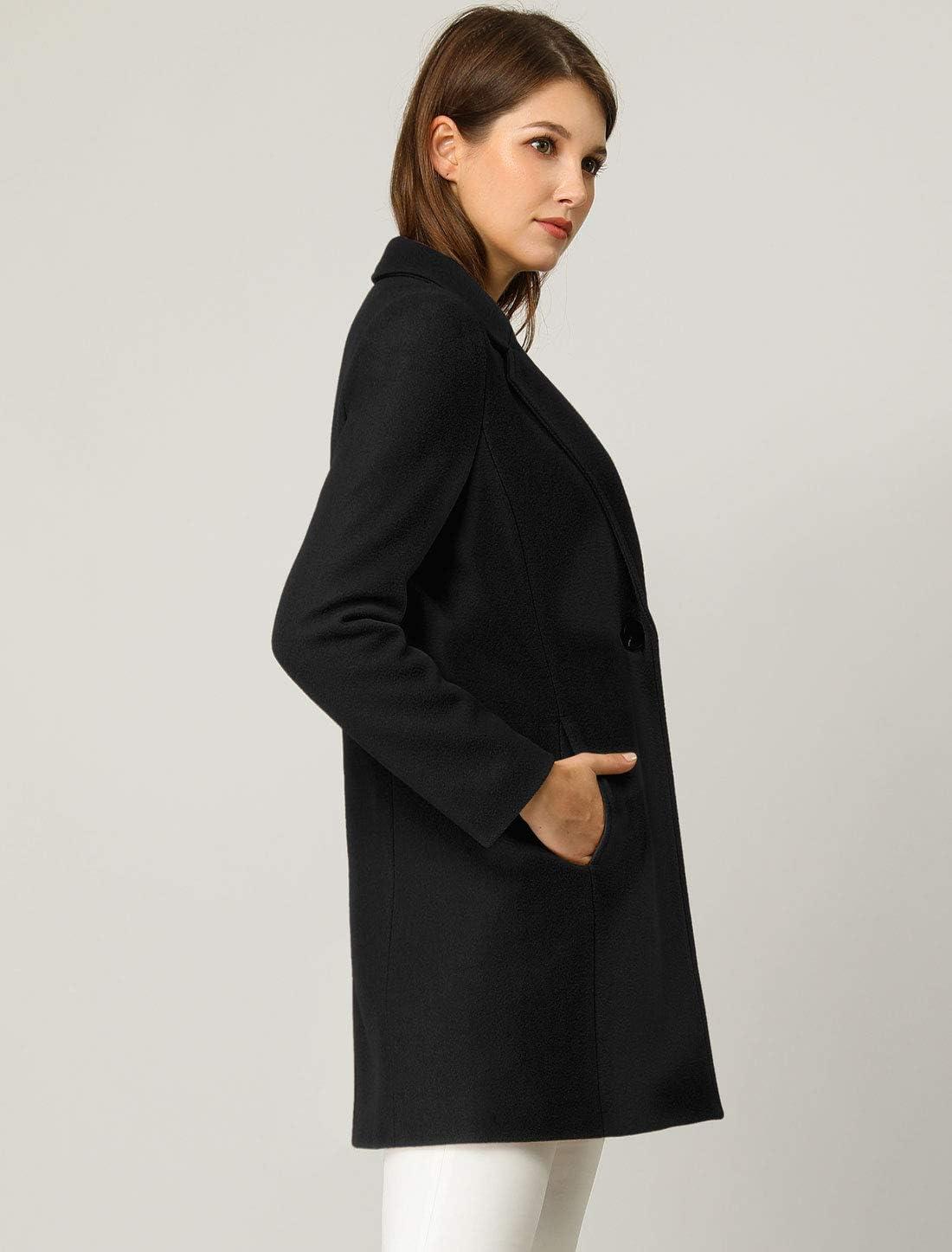 Allegra K Women's Winter Overcoat Notched Lapel One Buttoned Mid-Length Long Coat(Black)