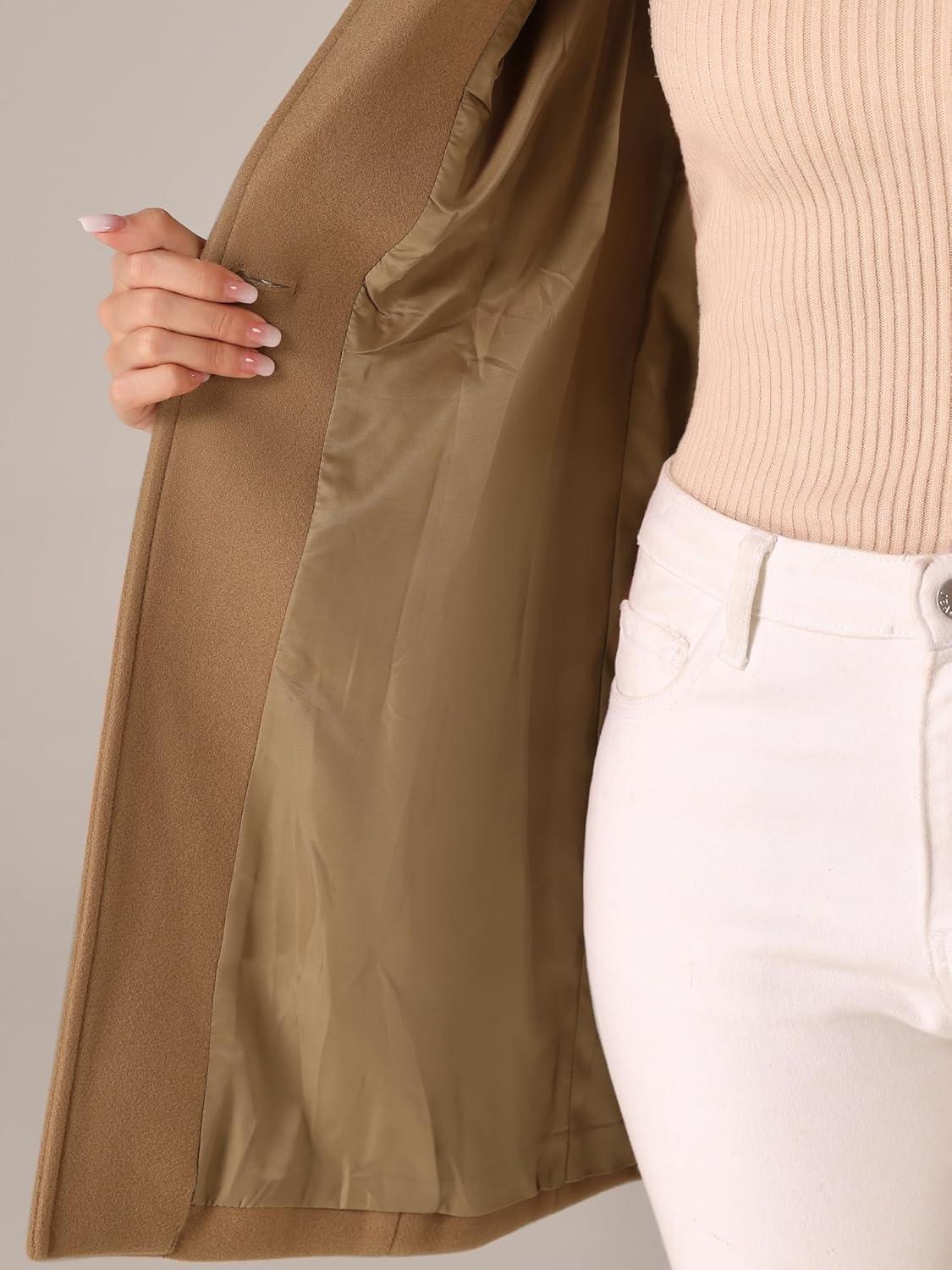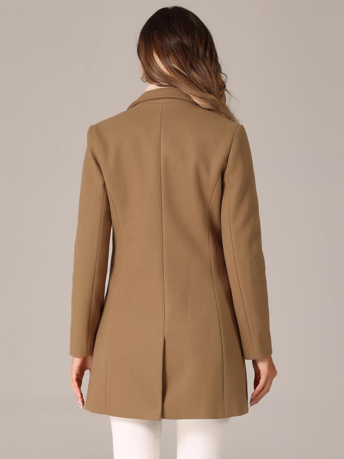 Allegra K Women’s Winter Overcoat Notched Lapel One Buttoned Mid-Length Long Coat(Camel)