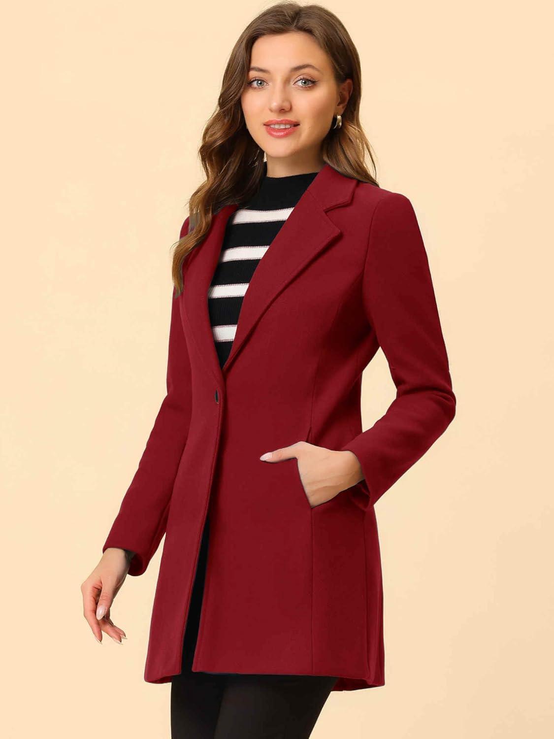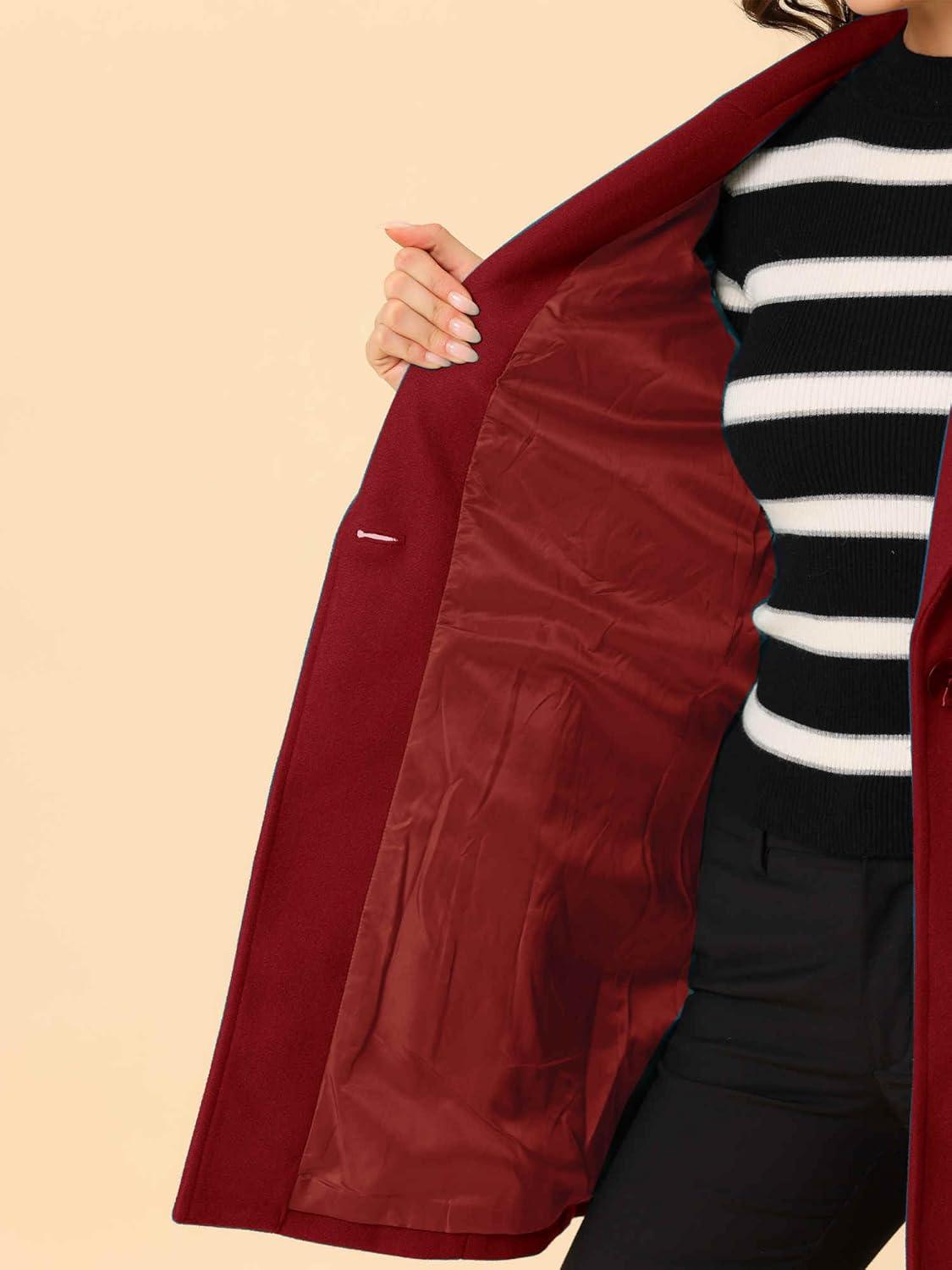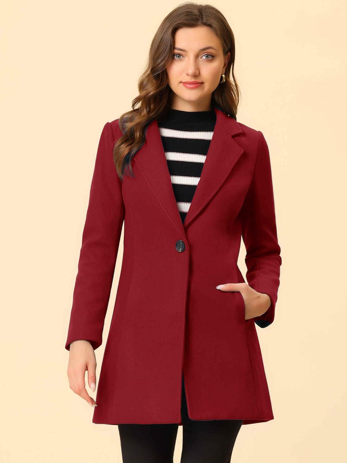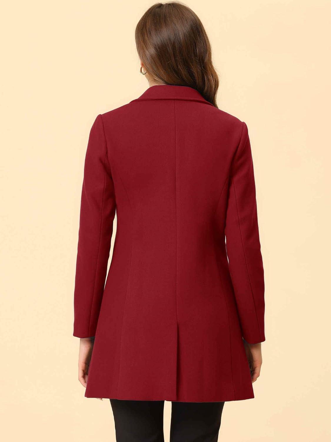 Allegra K Women's Winter Overcoat Notched Lapel One Buttoned Mid-Length Long Coat(Dark Red)