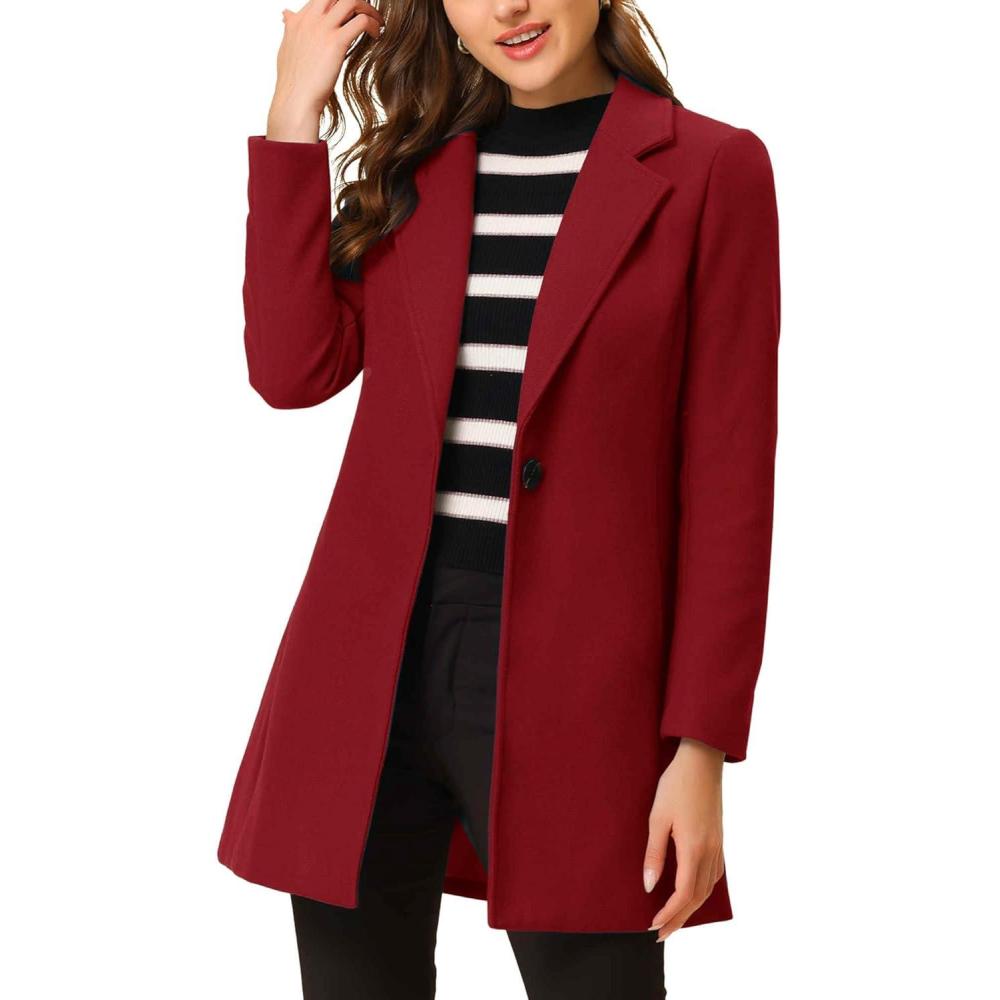 Allegra K Women’s Winter Overcoat Notched Lapel One Buttoned Mid-Length Long Coat(Dark Red)