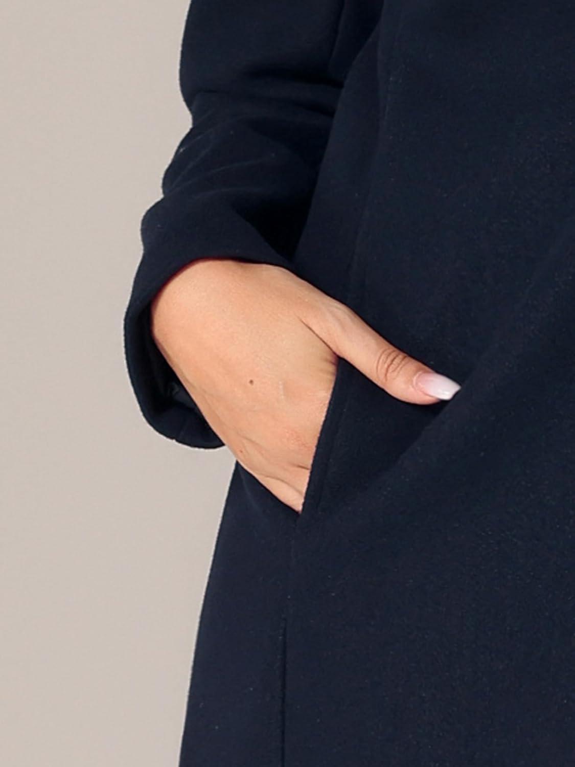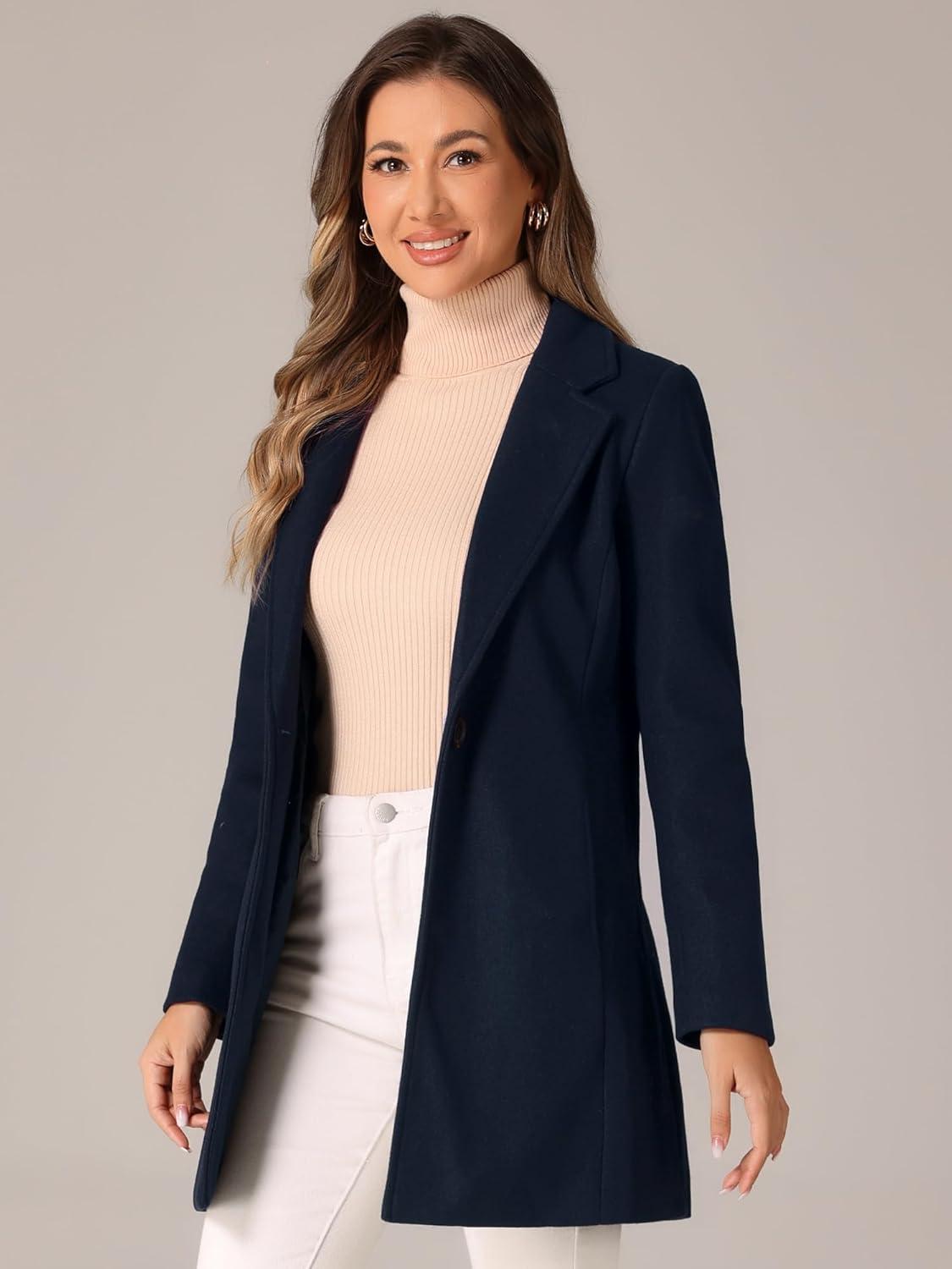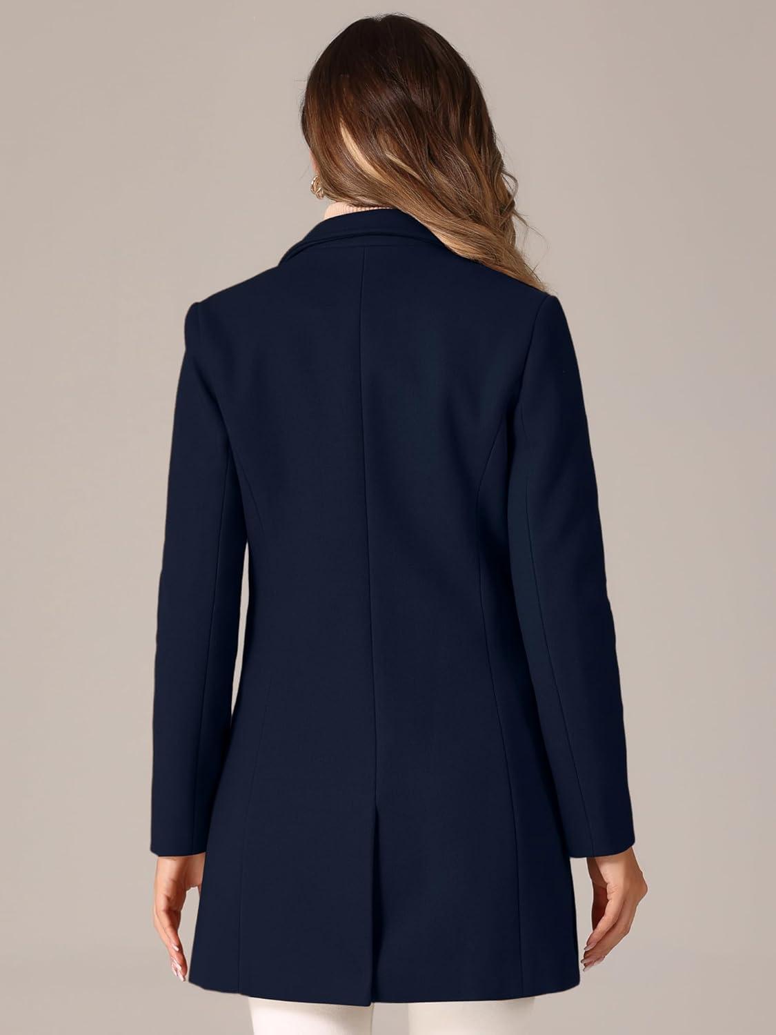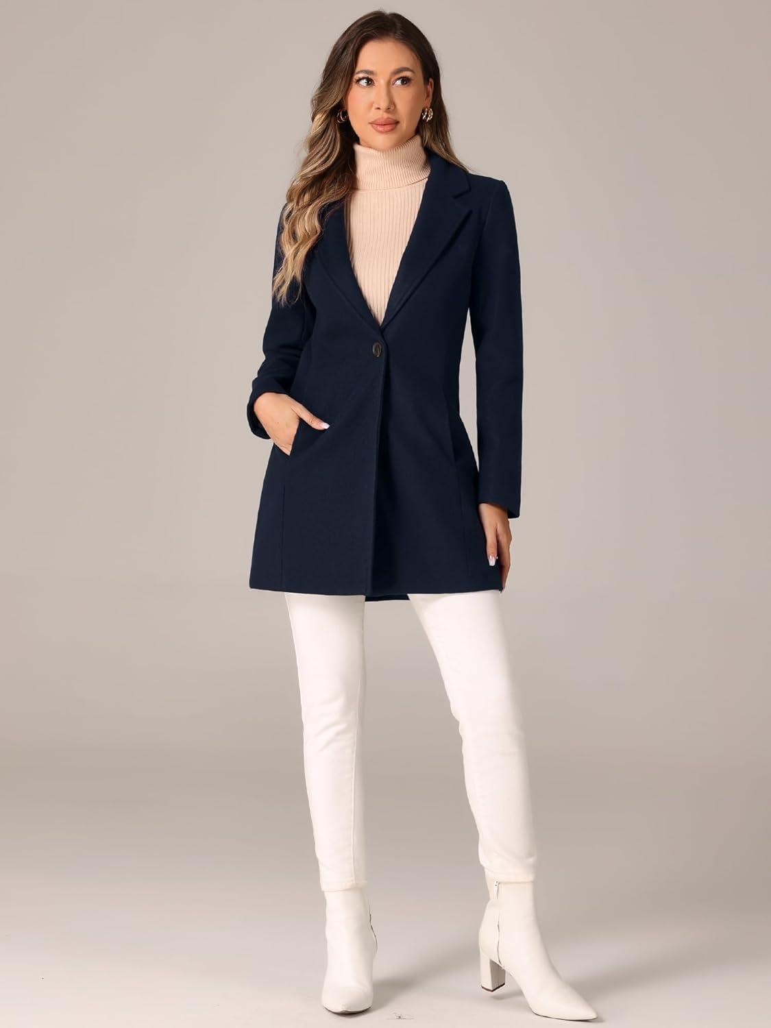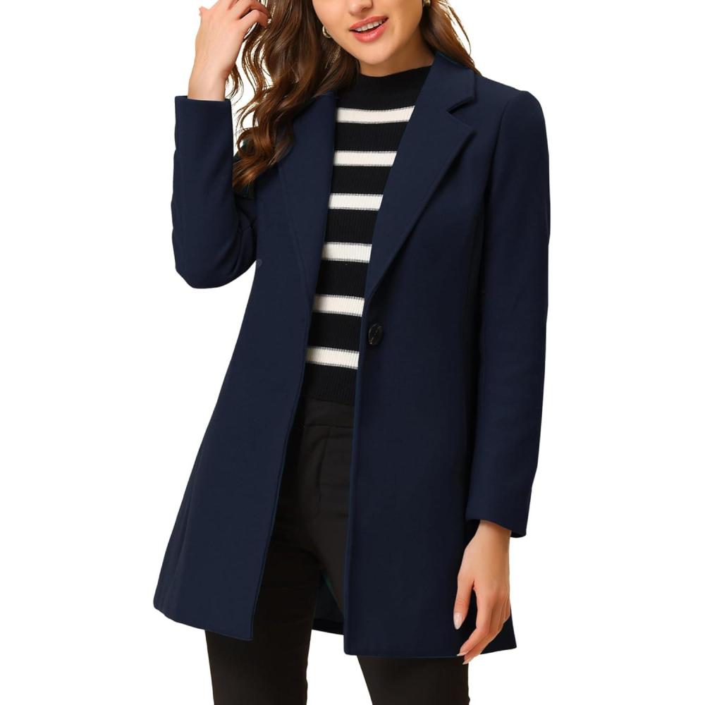 Allegra K Women's Winter Overcoat Notched Lapel One Buttoned Mid-Length Long Coat(Deep Blue)
