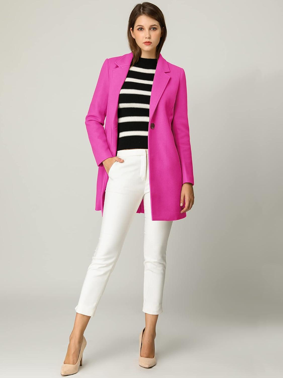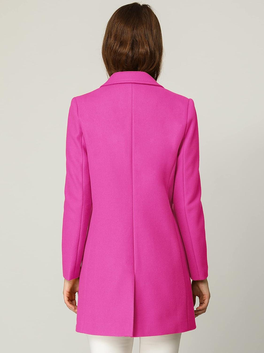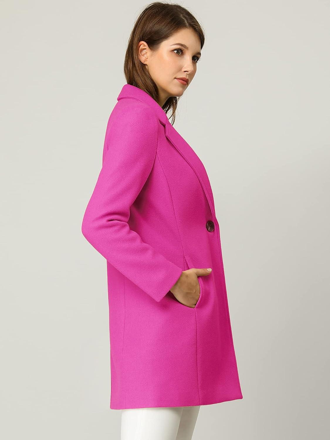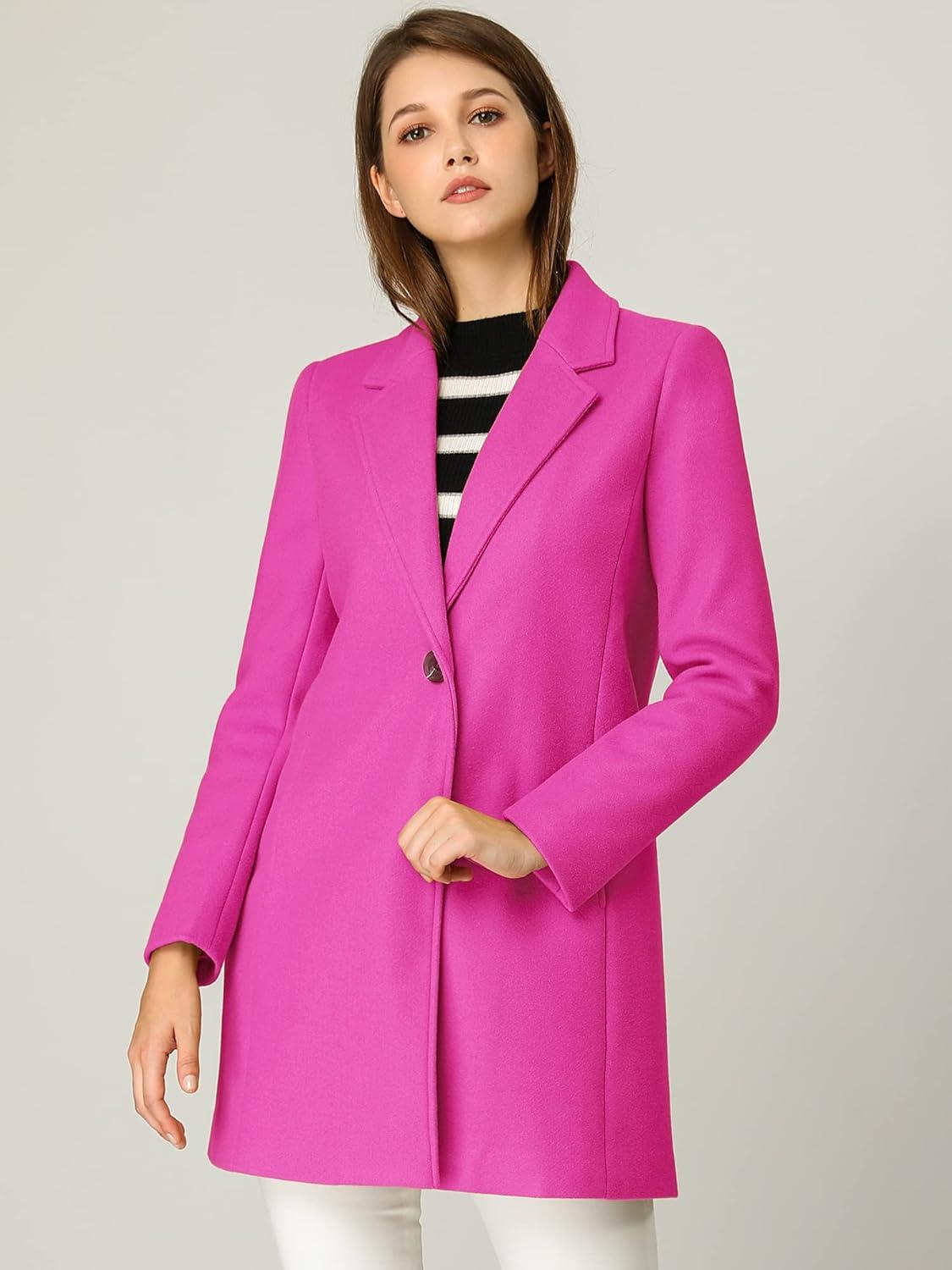 Allegra K Women’s Winter Overcoat Notched Lapel One Buttoned Mid-Length Long Coat(Fuchsia)