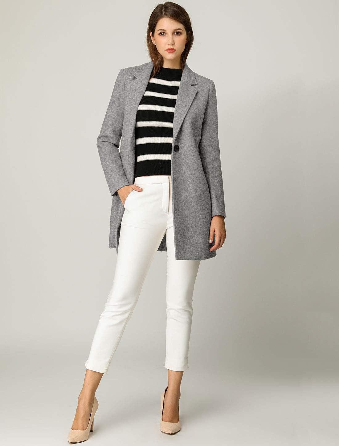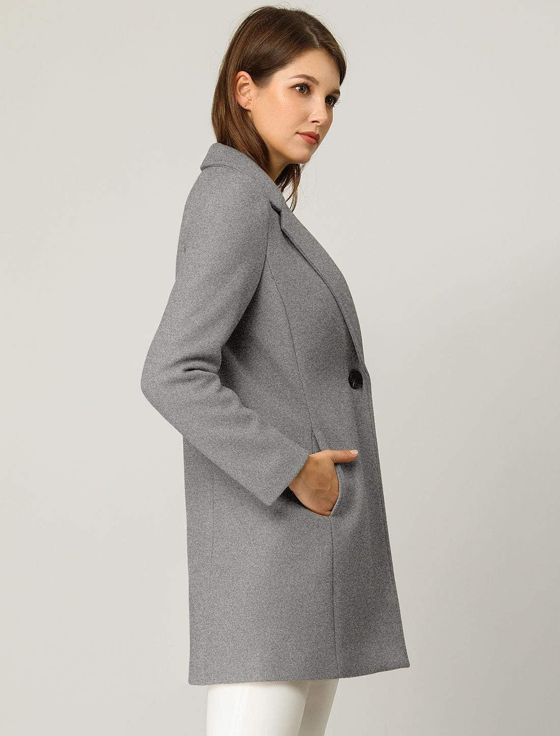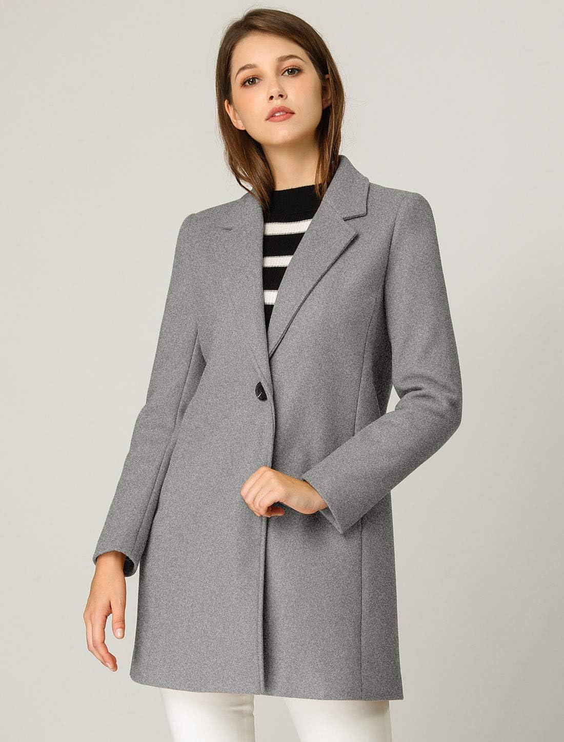 Allegra K Women’s Winter Overcoat Notched Lapel One Buttoned Mid-Length Long Coat(Grey)