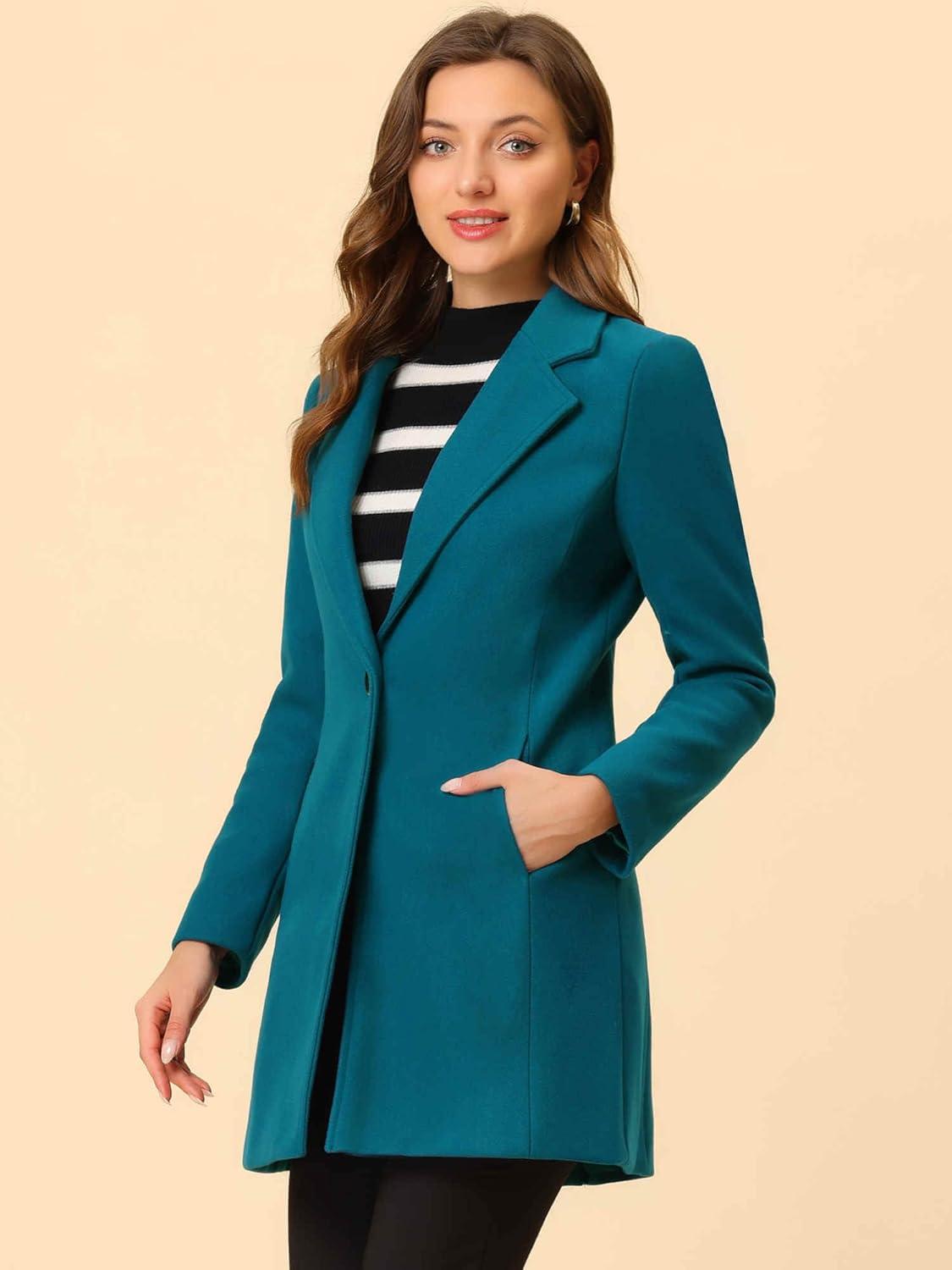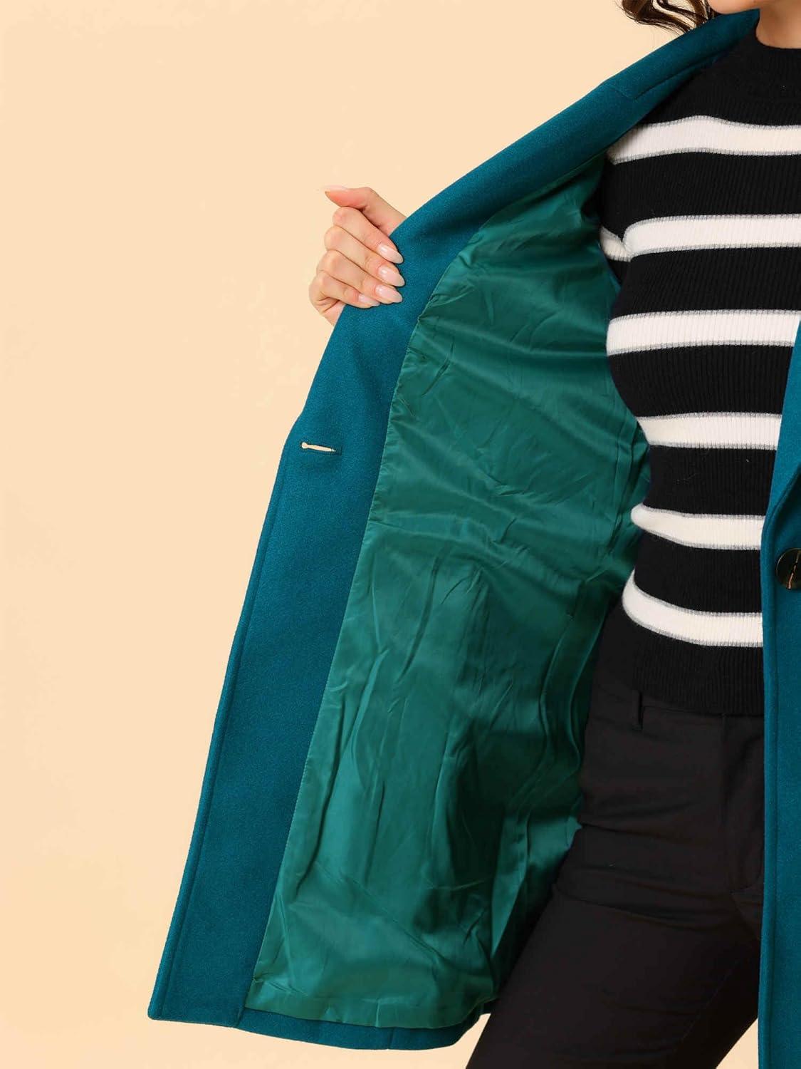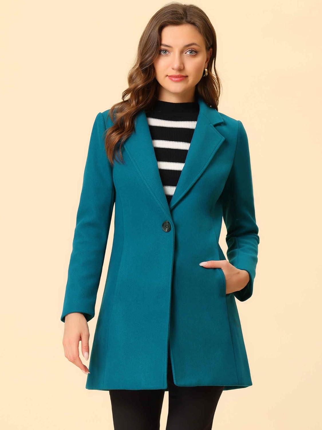 Allegra K Women's Winter Overcoat Notched Lapel One Buttoned Mid-Length Long Coat(Lake Blue)