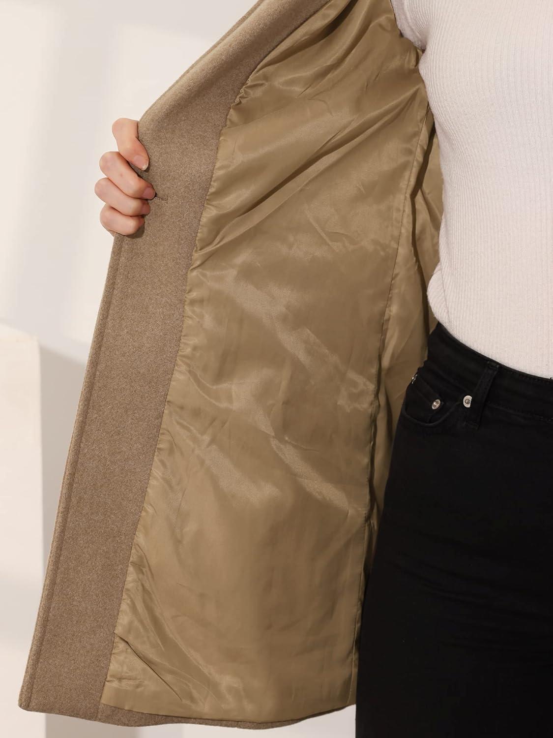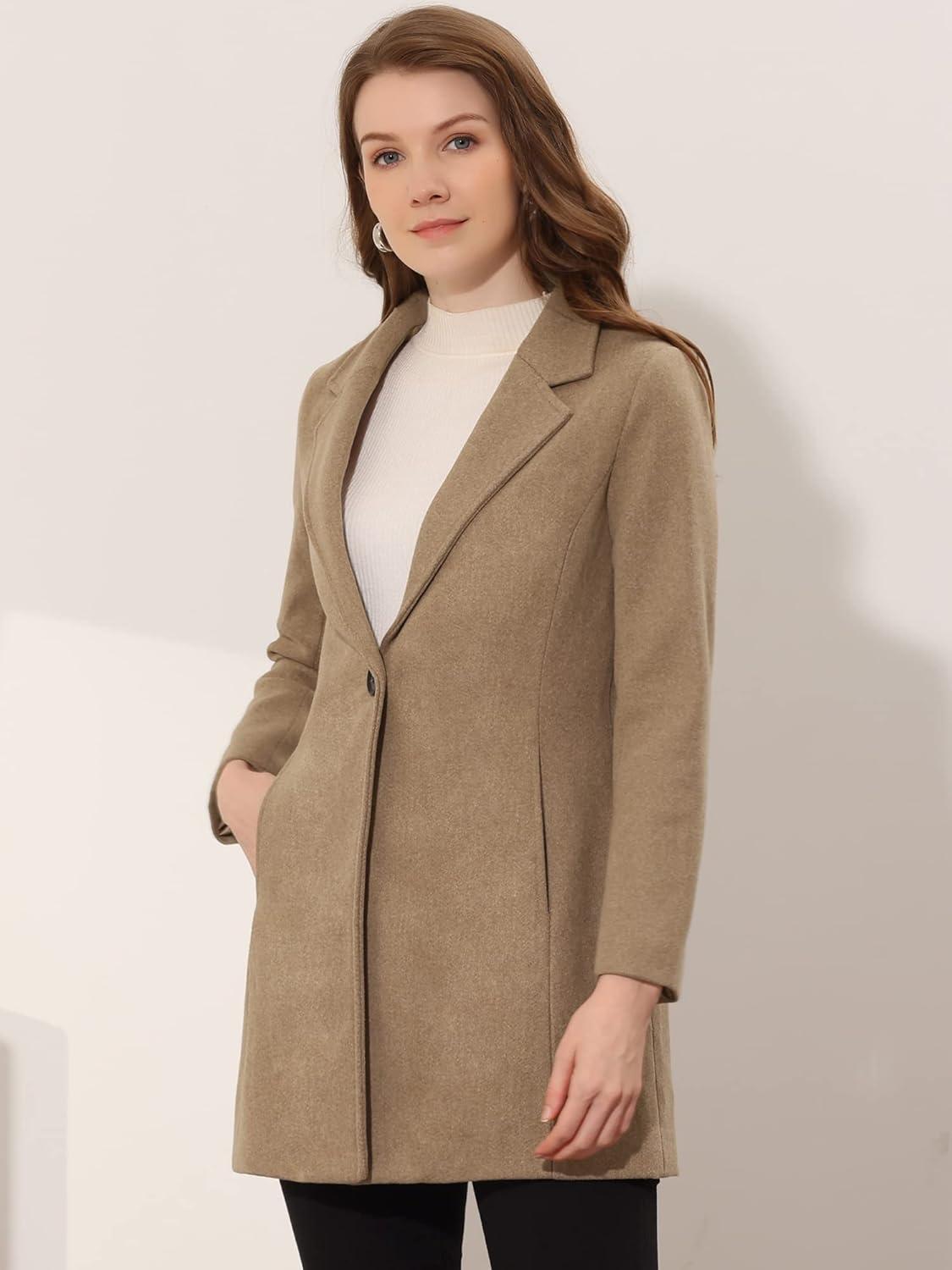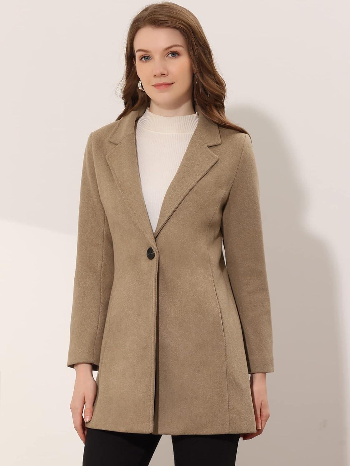 Allegra K Women's Winter Overcoat Notched Lapel One Buttoned Mid-Length Long Coat(Light Brown)