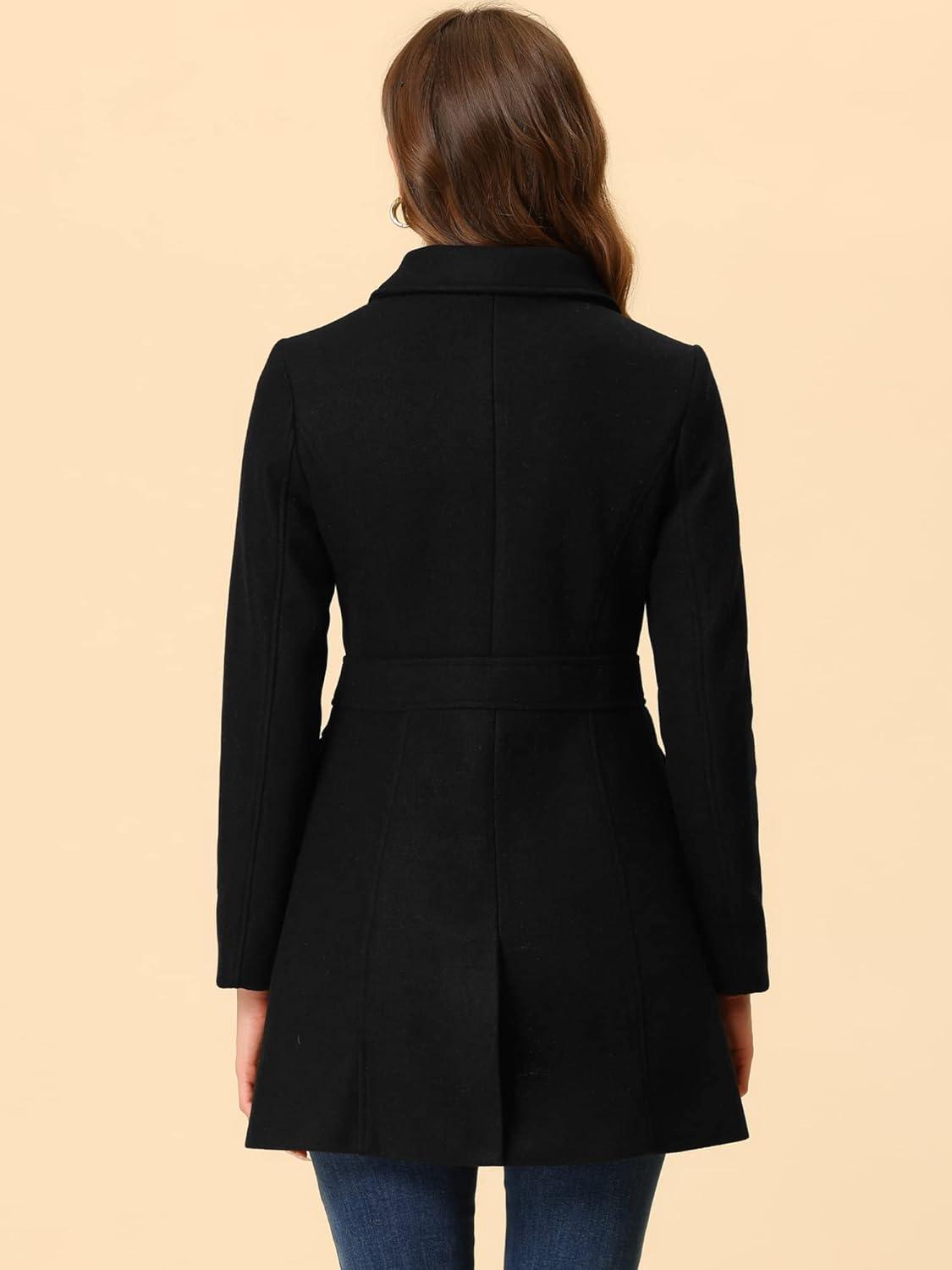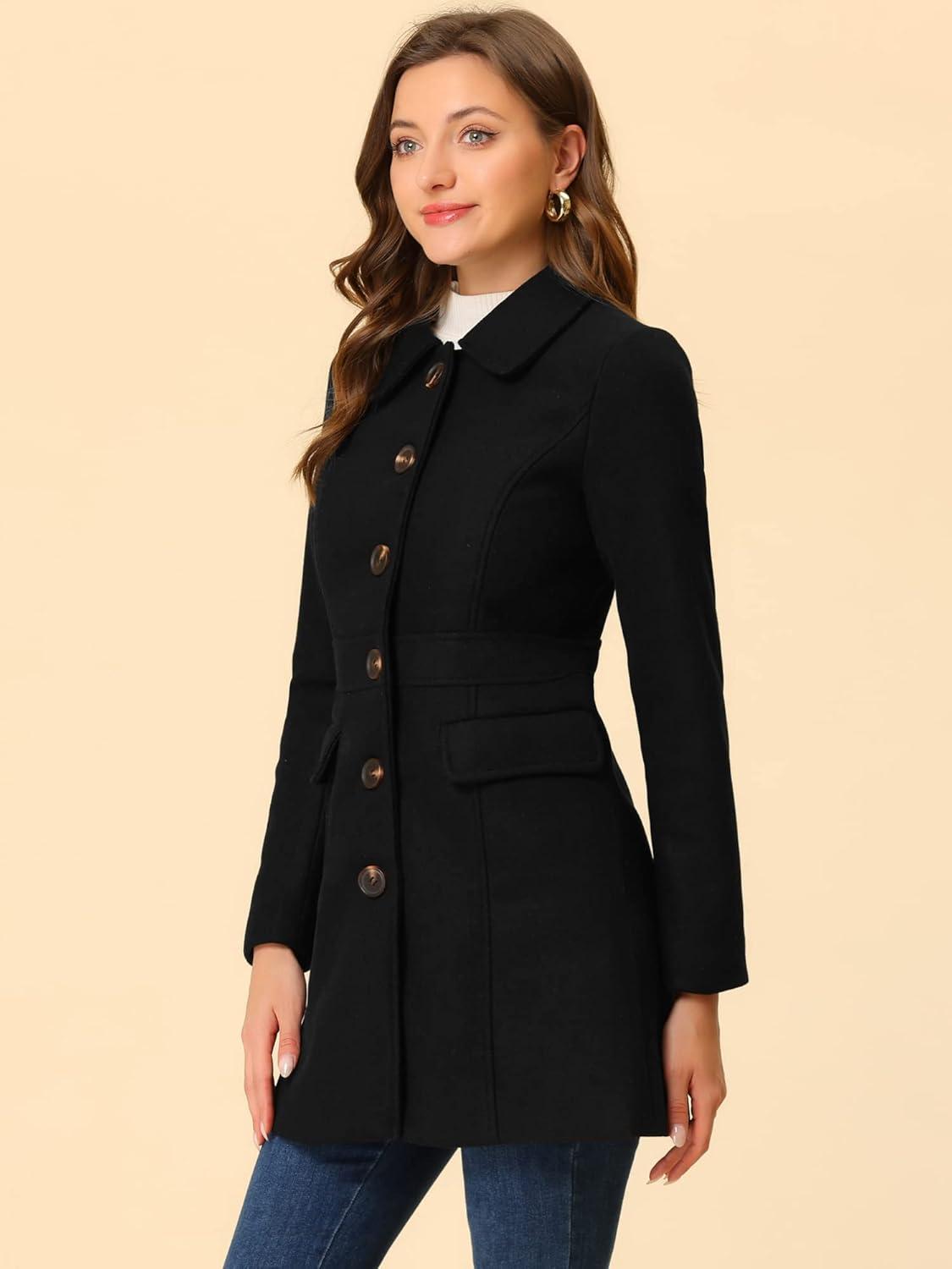 Allegra K Women’s Winter Overcoat Peter Pan Collar Flap Pocket Single Breasted Coat(Black)