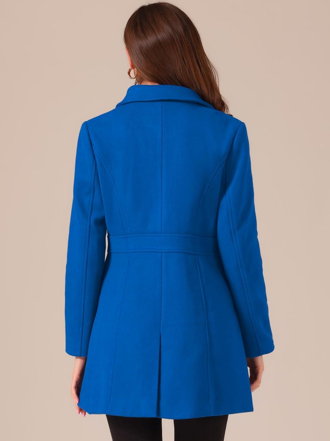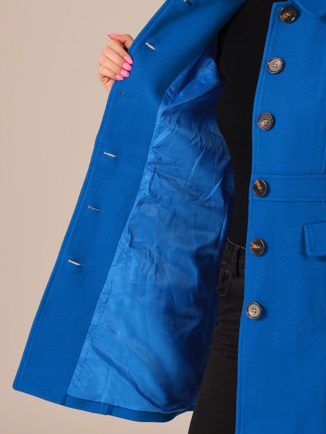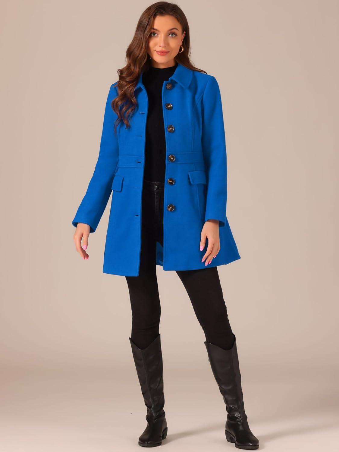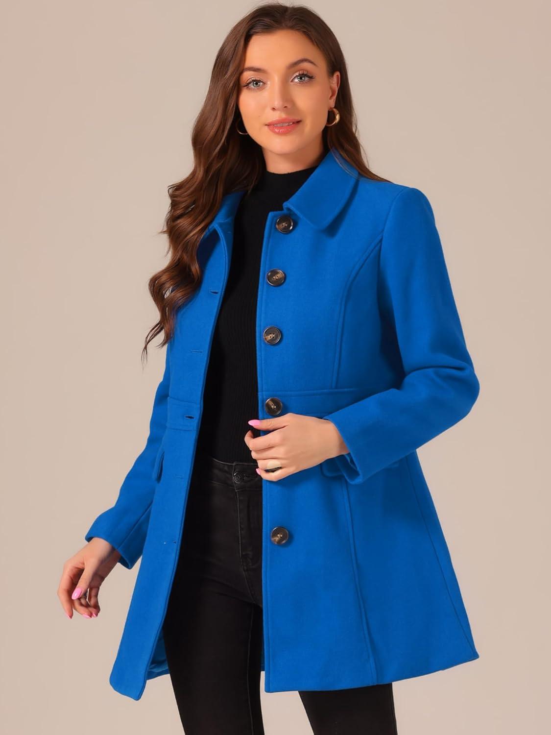Allegra K Women’s Winter Overcoat Peter Pan Collar Flap Pocket Single Breasted Coat(Blue)