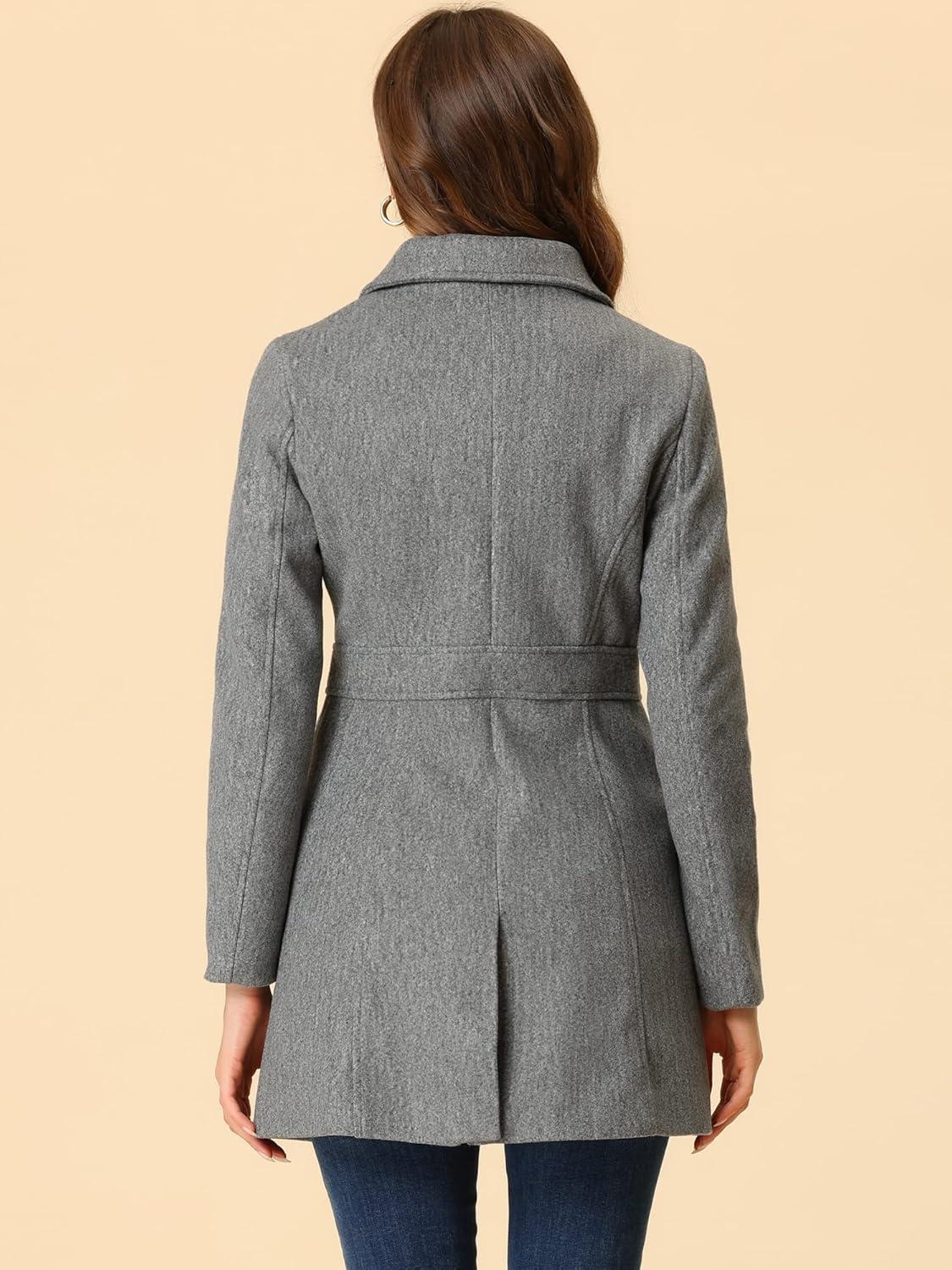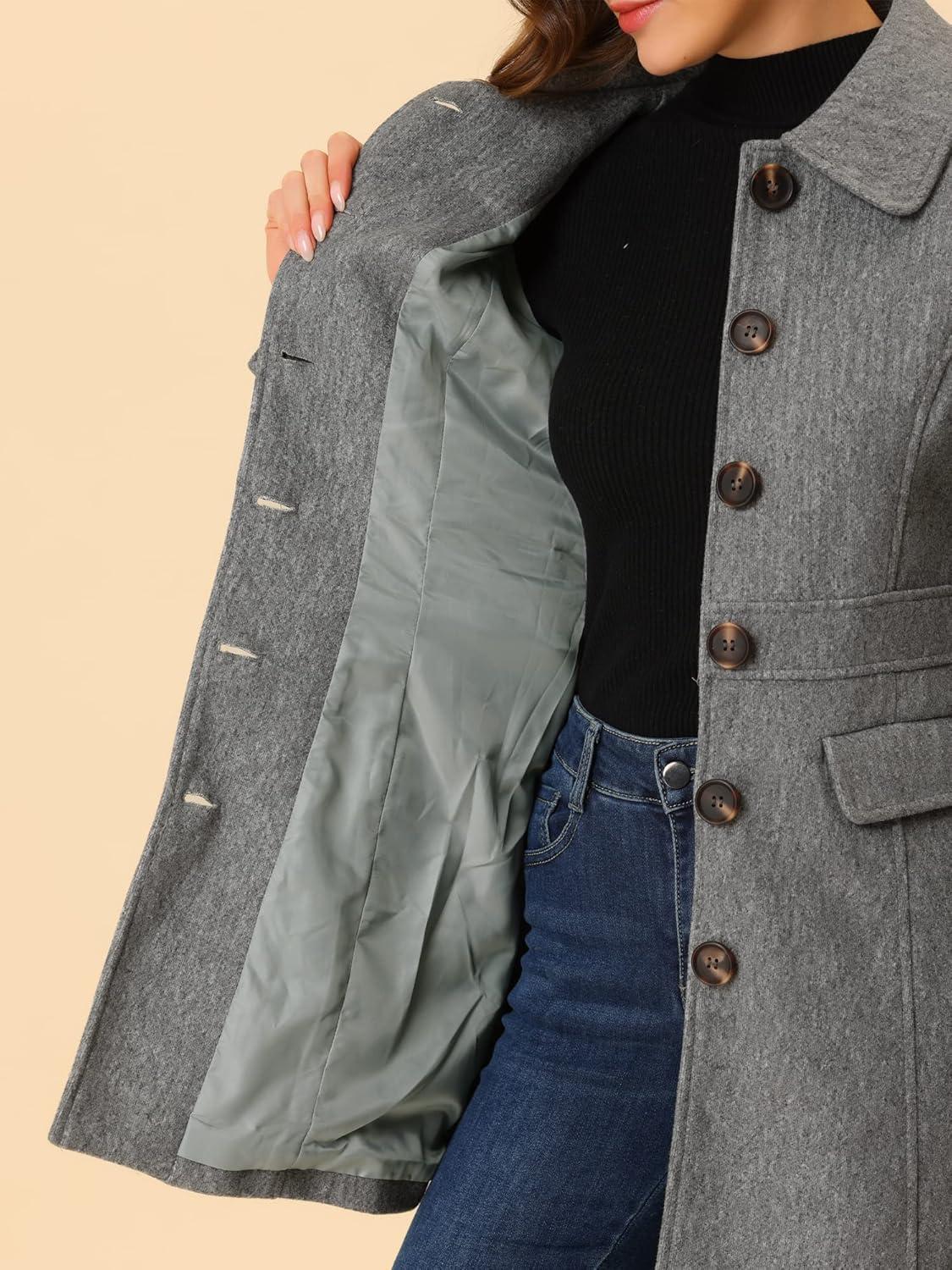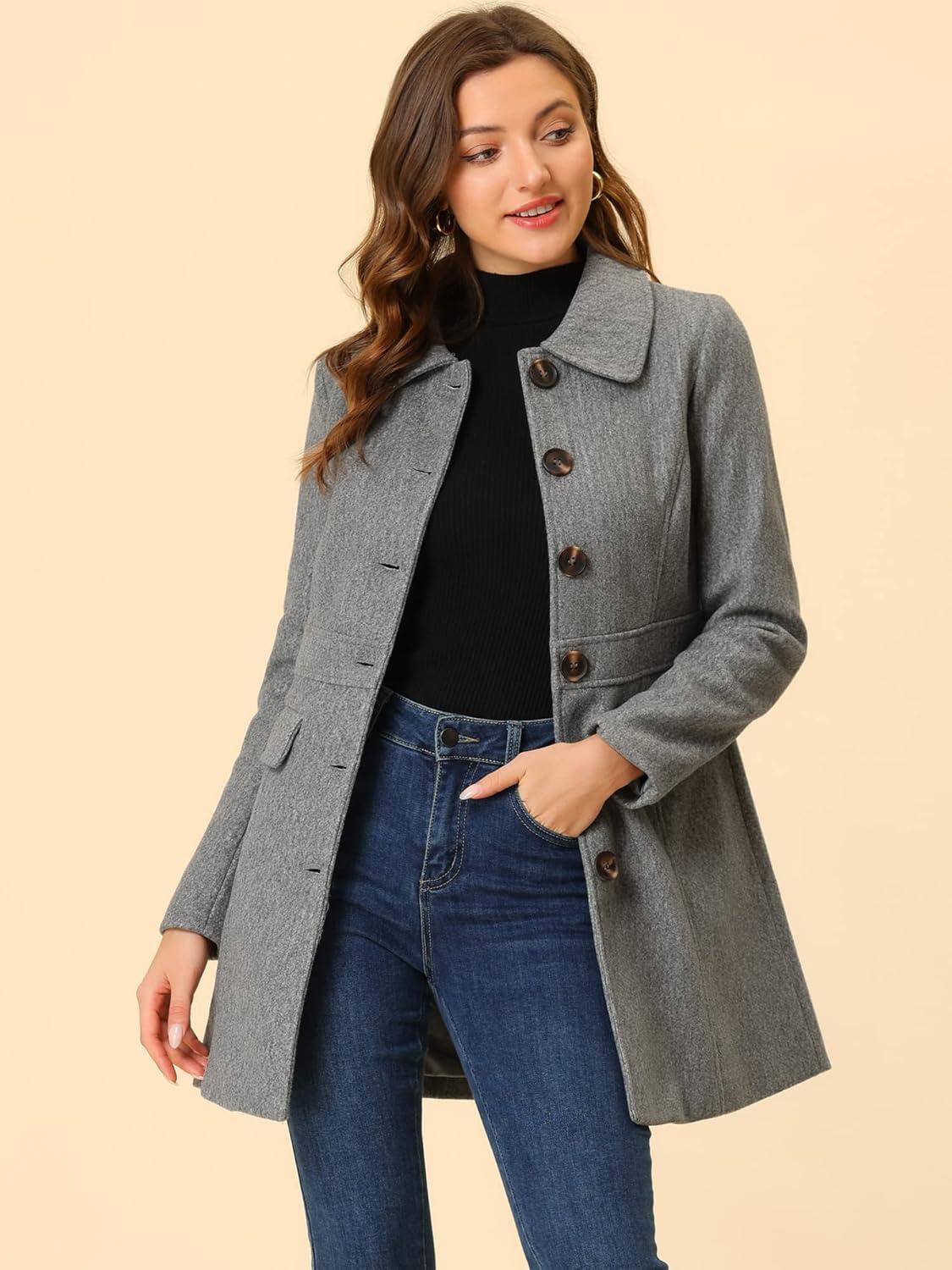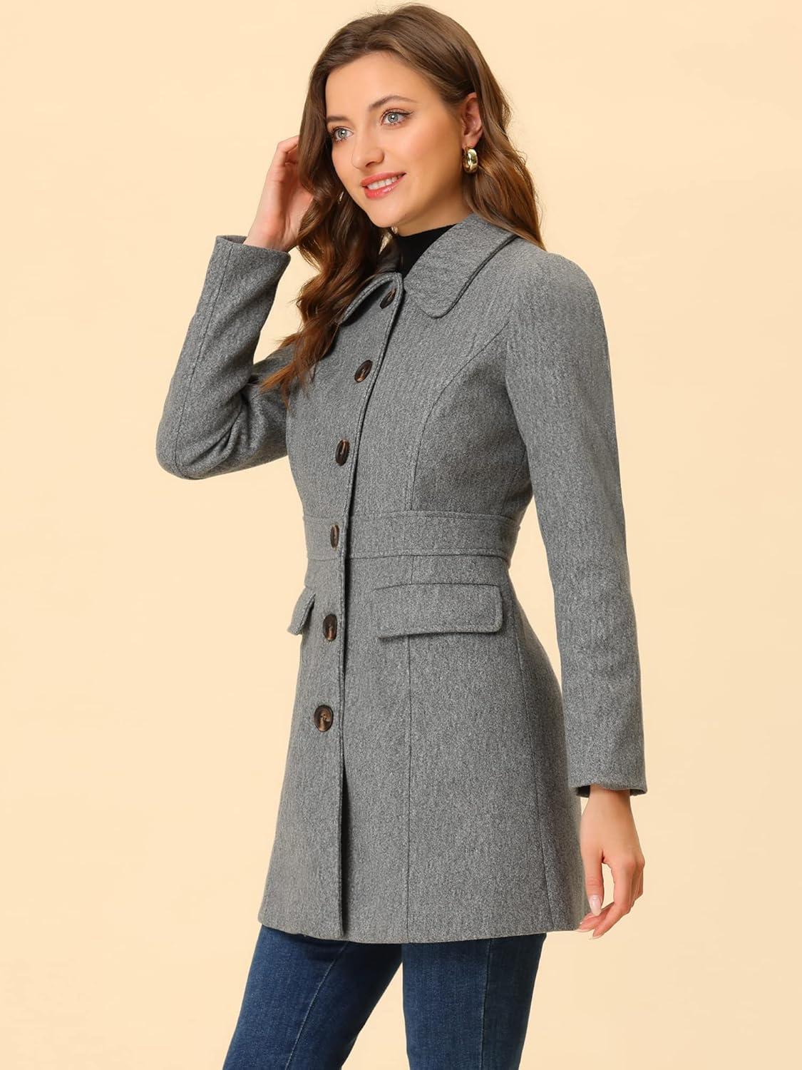 Allegra K Women’s Winter Overcoat Peter Pan Collar Flap Pocket Single Breasted Coat(Grey)