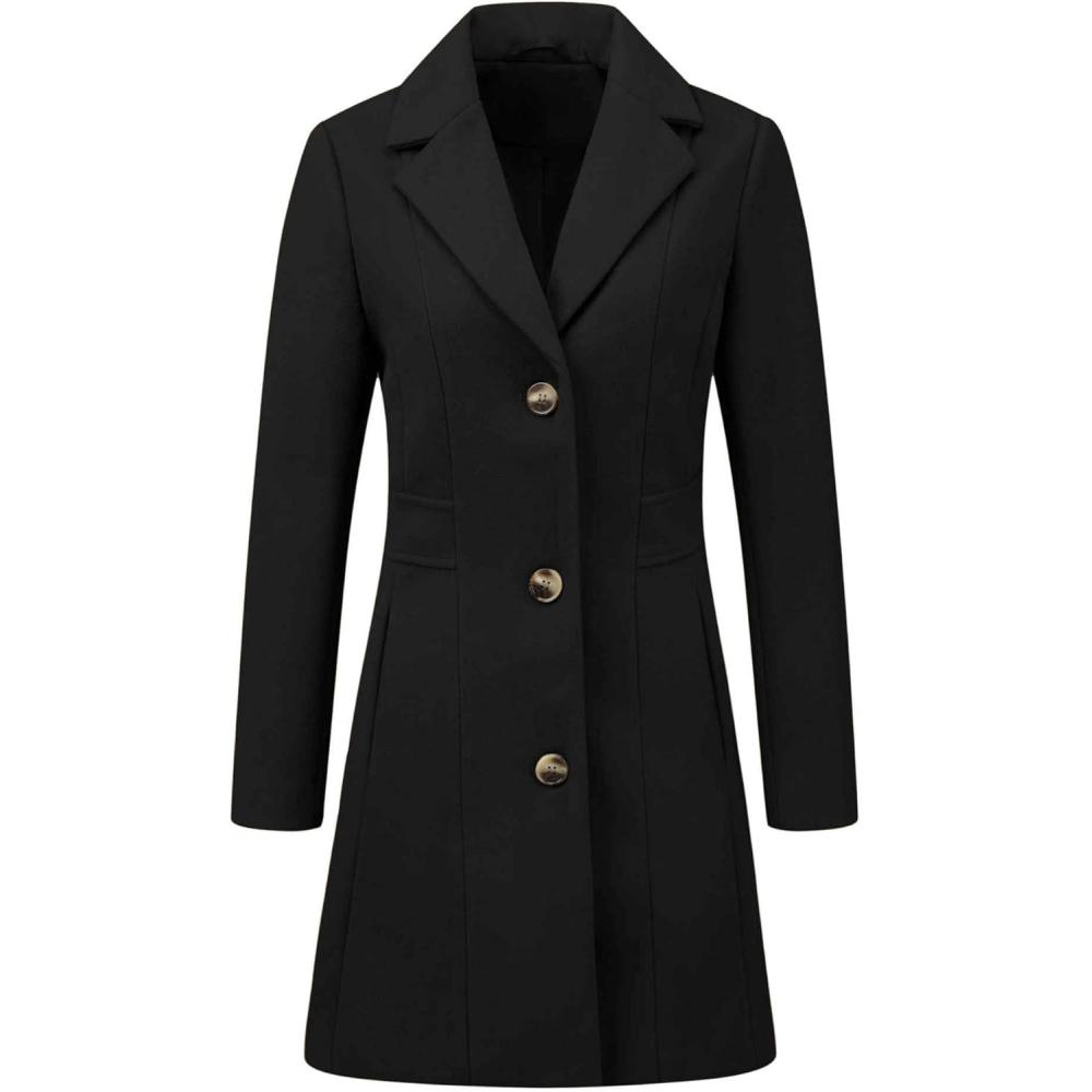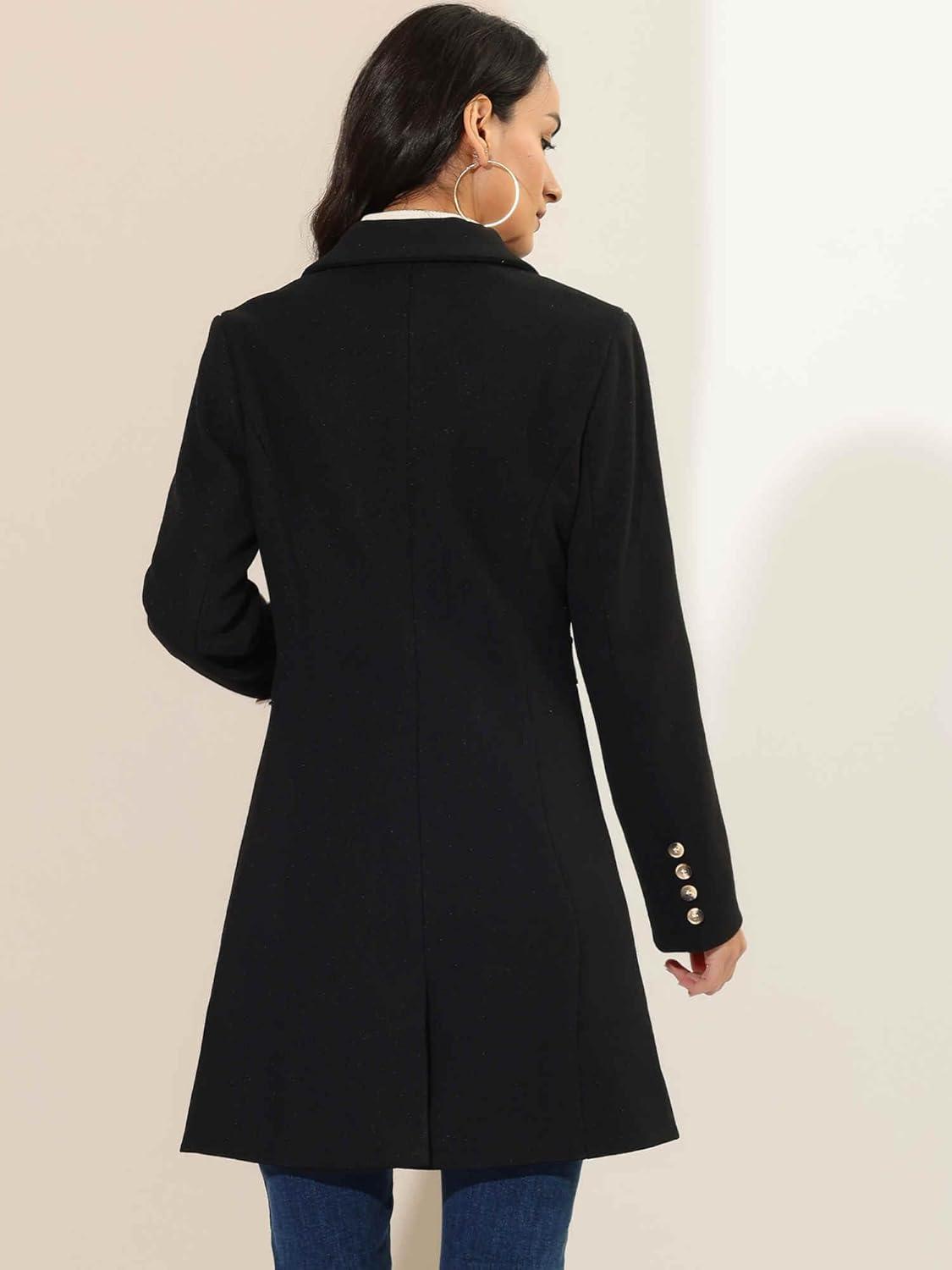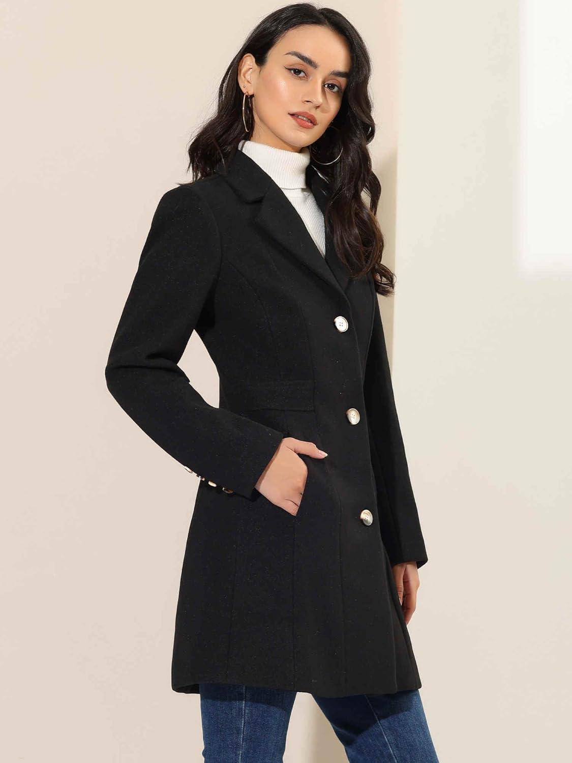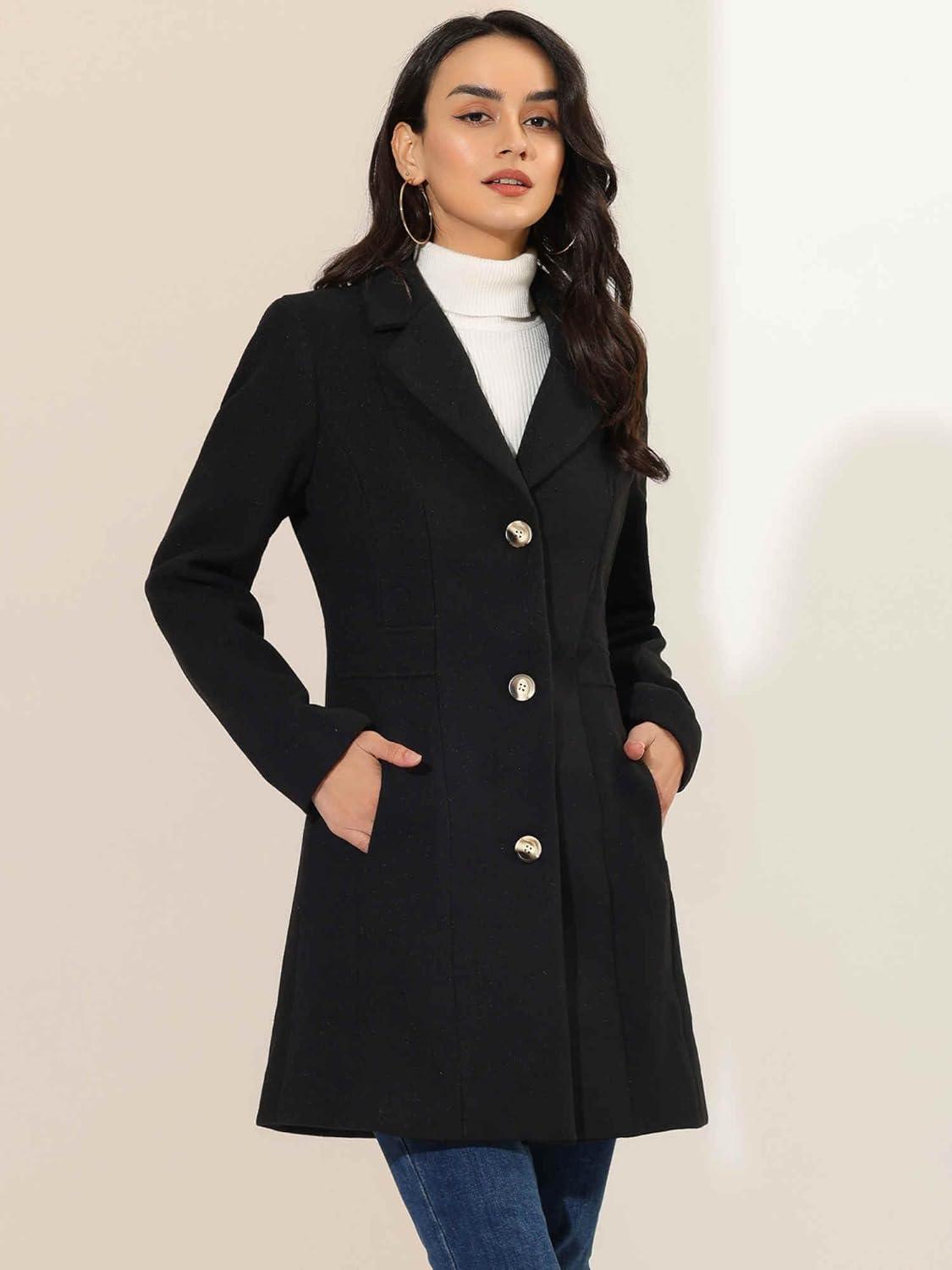 Allegra K Women's Winter Pea Coat 2025 Fall Single Breasted Long Outerwear Trench Coats(Black)