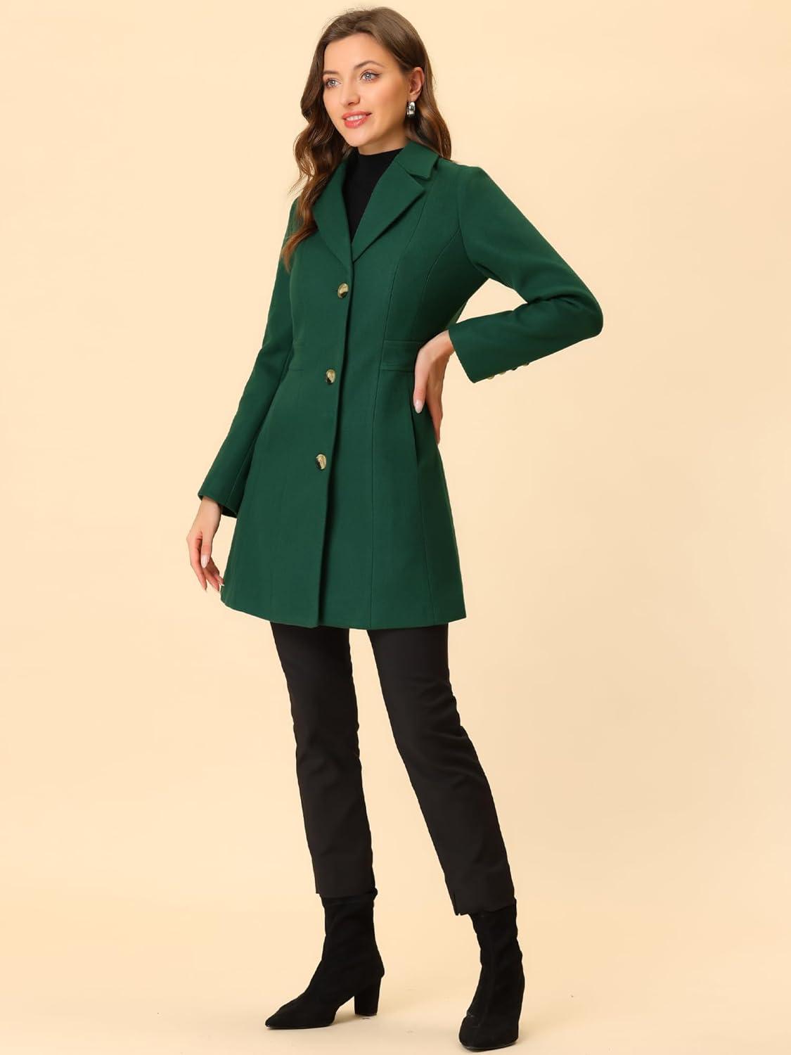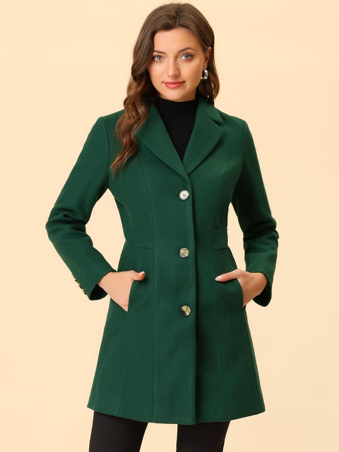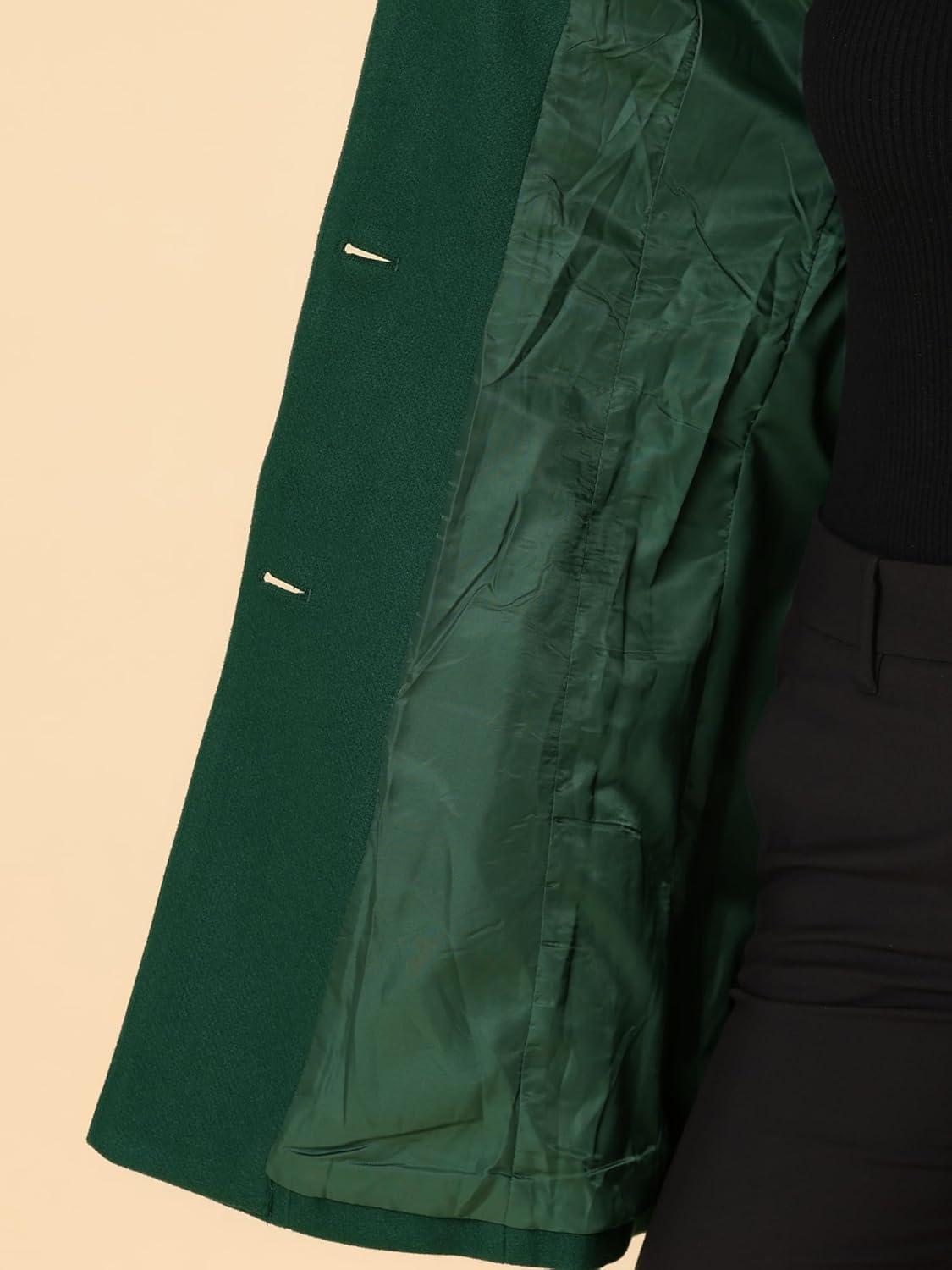 Allegra K Women's Winter Pea Coat 2025 Fall Single Breasted Long Outerwear Trench Coats(Green)