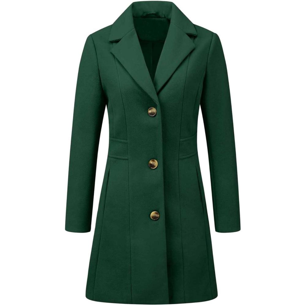 Allegra K Women’s Winter Pea Coat 2025 Fall Single Breasted Long Outerwear Trench Coats(Green)