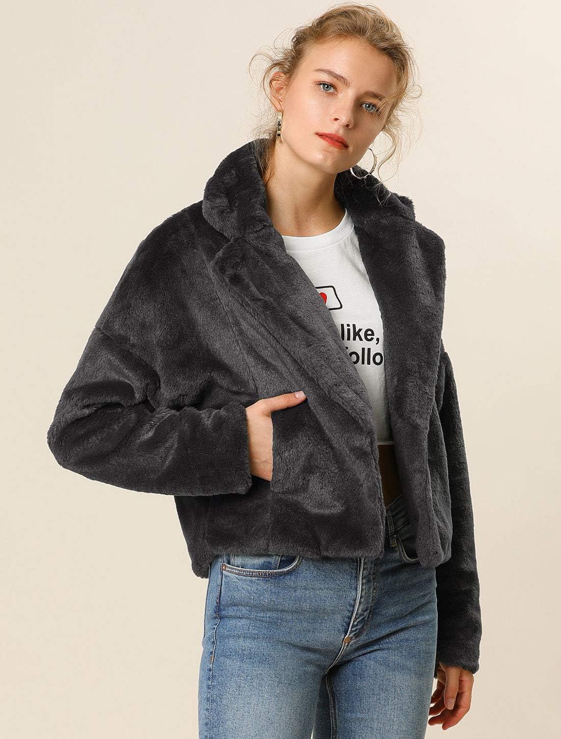 Allegra K Women's Winter Wedding Faux Fur Bolero Jacket Loose Formal Faux Fur Coat(Black)
