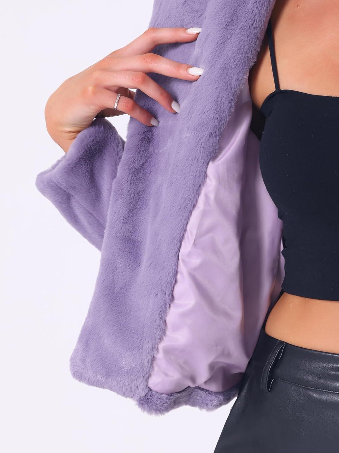 Allegra K Women's Winter Wedding Faux Fur Bolero Jacket Loose Formal Faux Fur Coat(Grey Purple)