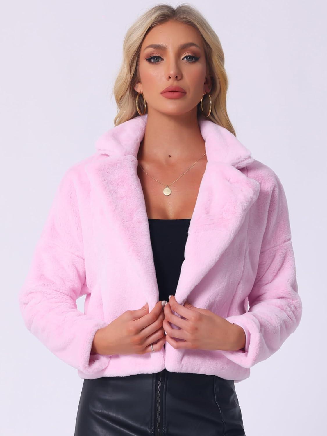 Allegra K Women’s Winter Wedding Faux Fur Bolero Jacket Loose Formal Faux Fur Coat(Pink)