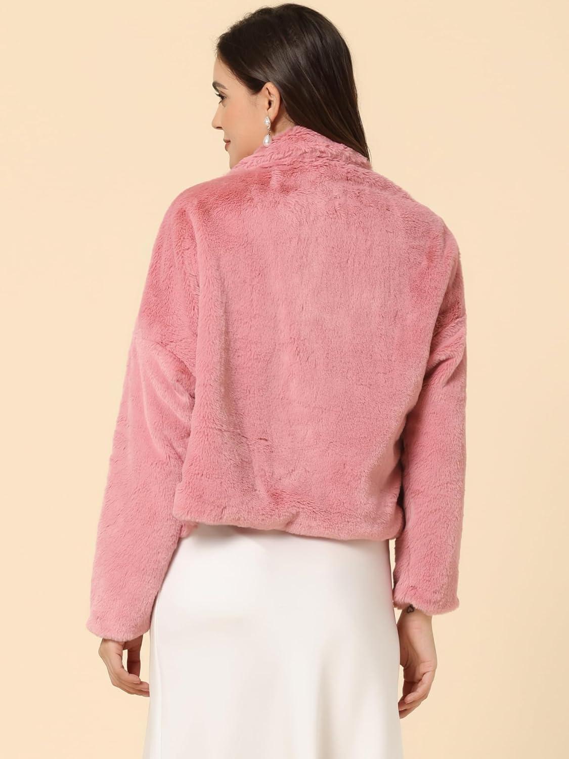 imageAllegra K Womens Winter Wedding Faux Fur Bolero Jacket Loose Formal Faux Fur CoatPink