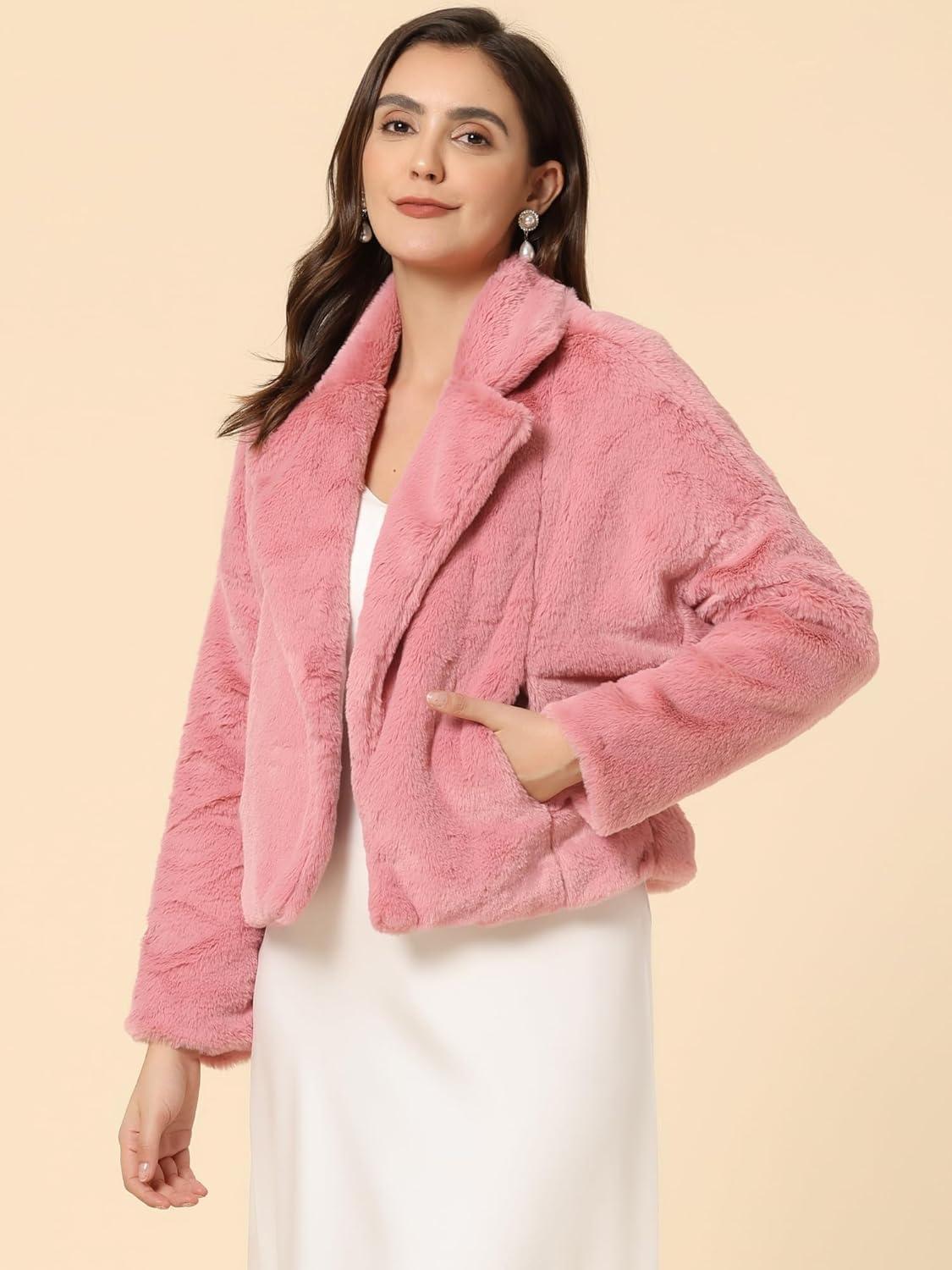 Allegra K Women's Winter Wedding Faux Fur Bolero Jacket Loose Formal Faux Fur Coat(Pink)