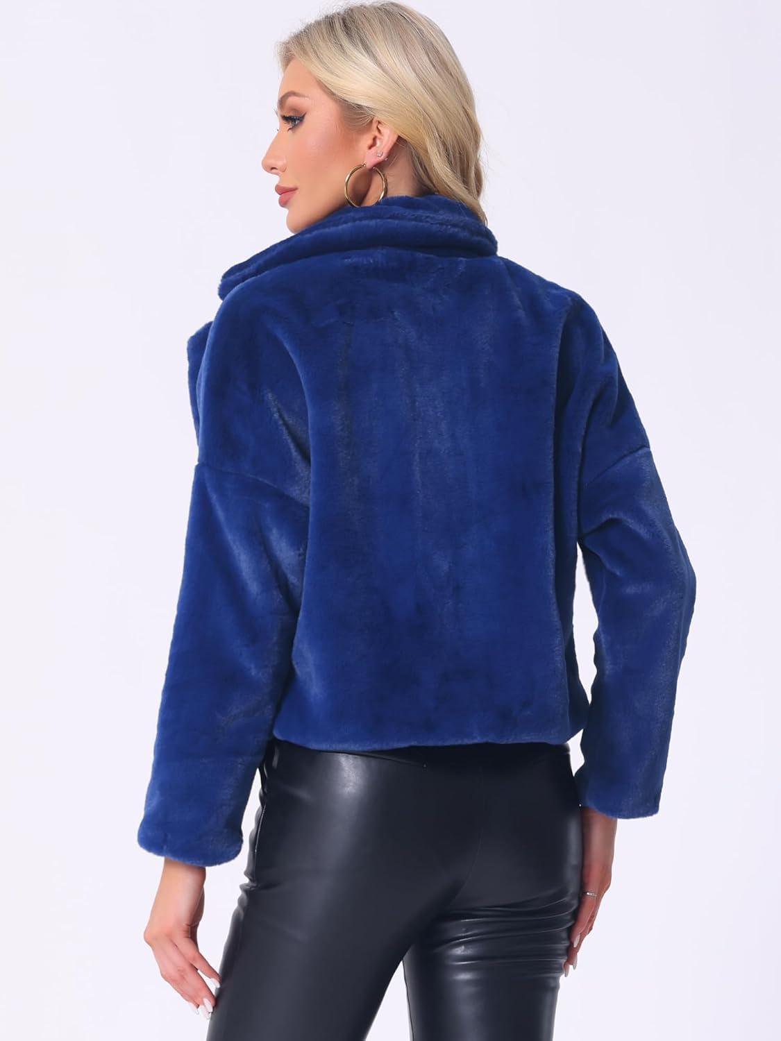 Allegra K Women's Winter Wedding Faux Fur Bolero Jacket Loose Formal Faux Fur Coat(Royal Blue)